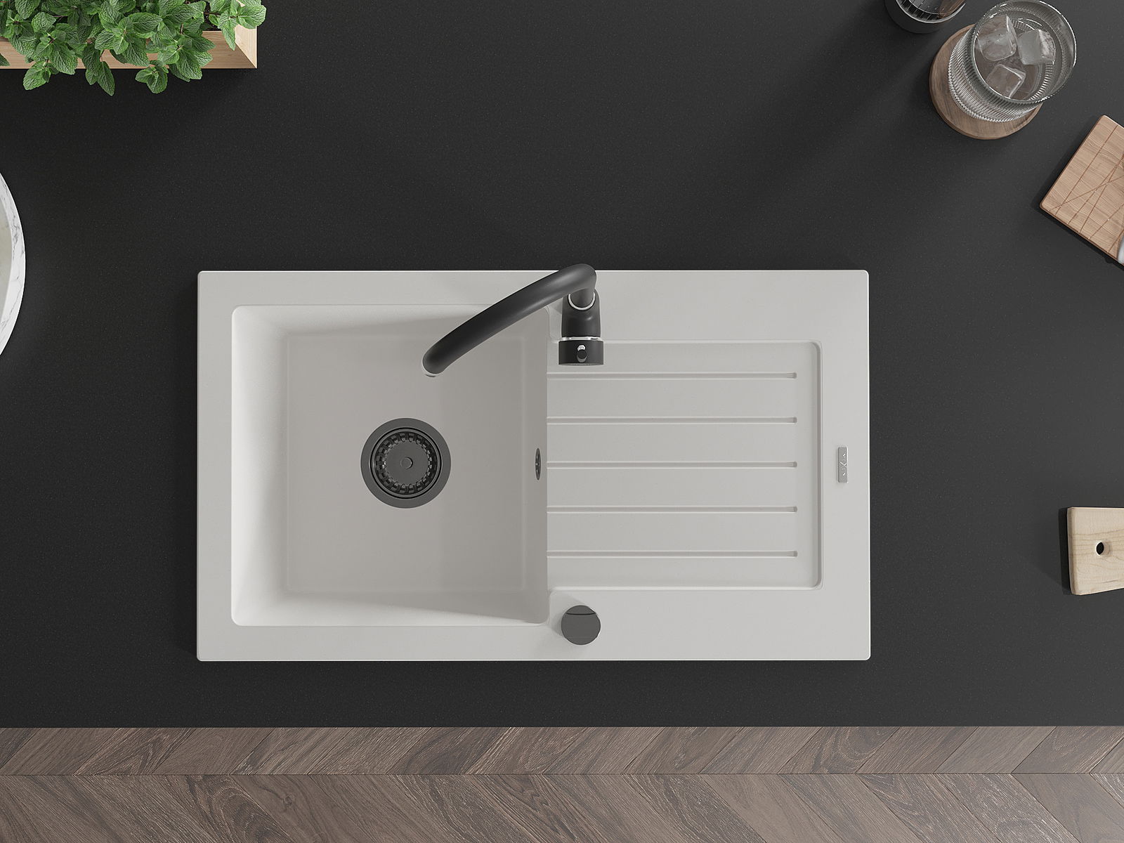Suprafața chiuvetei este rezistentă la pete și decolorarea, datorită căreia este ușor de curățat și își păstrează culoarea mult timp. Estetică și practic completarea fiecărei bucătării.