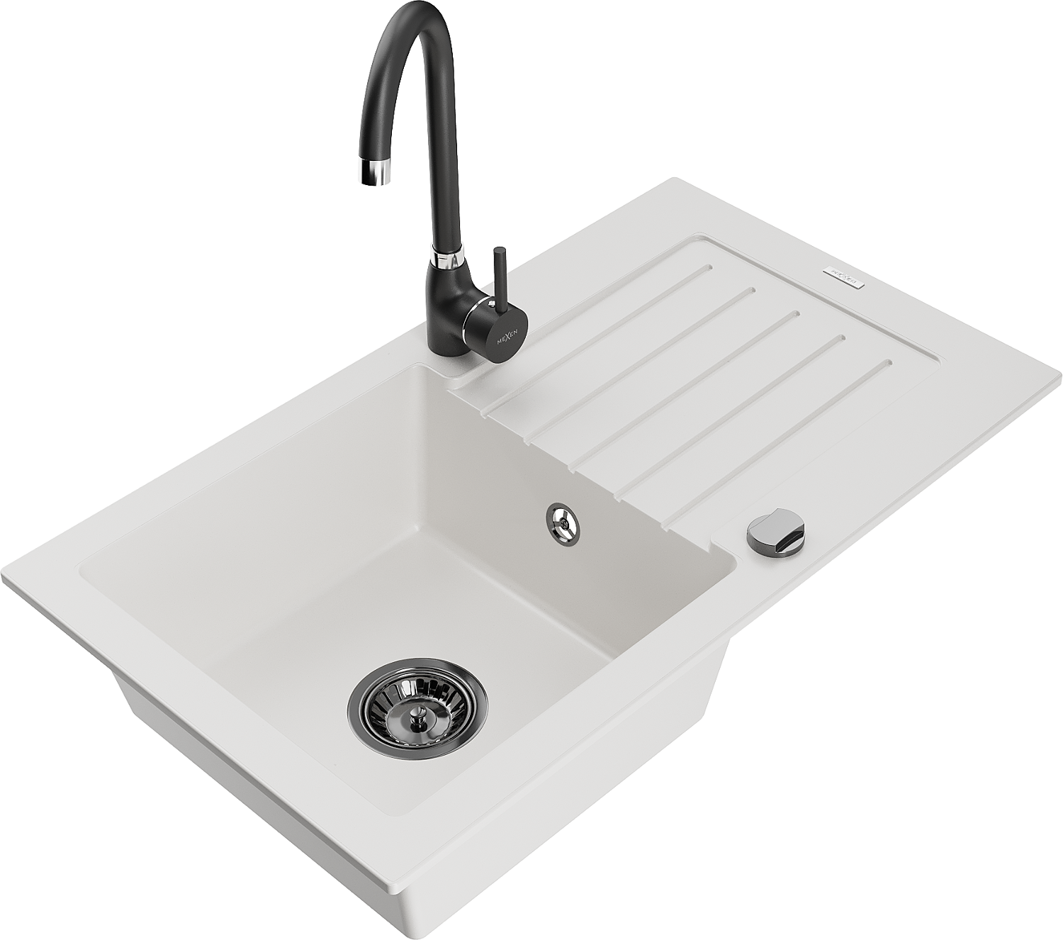 Mexen Pablo chiuvetă de bucătărie din granit cu o cuvă, scurgător și baterie Telma, alb - 6510-20-670200-70