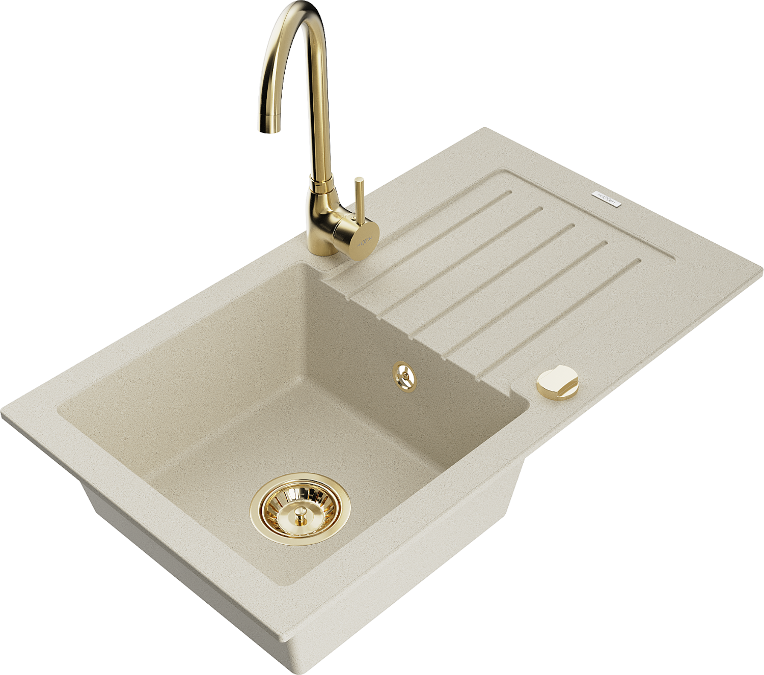 Mexen Pablo chiuvetă din granit cu 1 cameră și picurător și baterie de bucătărie Telma, bej - 6510-69-670200-50