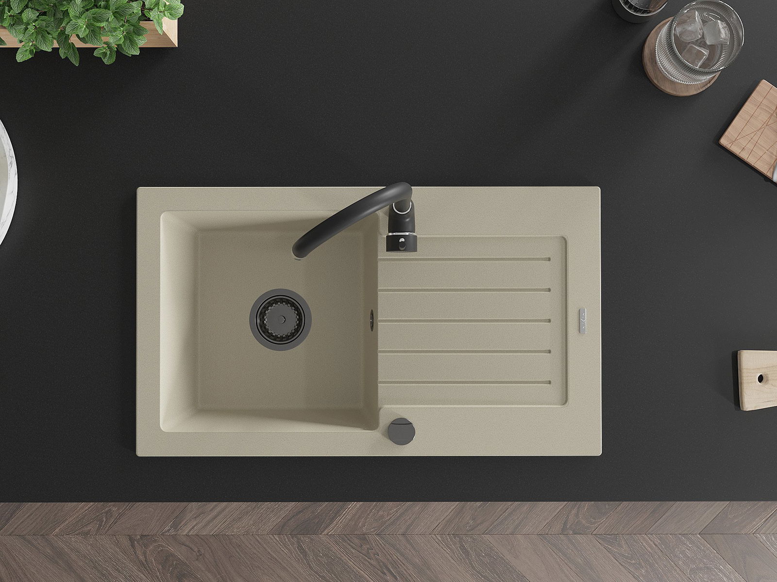 Mexen Pablo chiuvetă din granit cu 1 cuvă cu picurător și baterie de bucătărie Telma, bej - 6510-69-670200-70