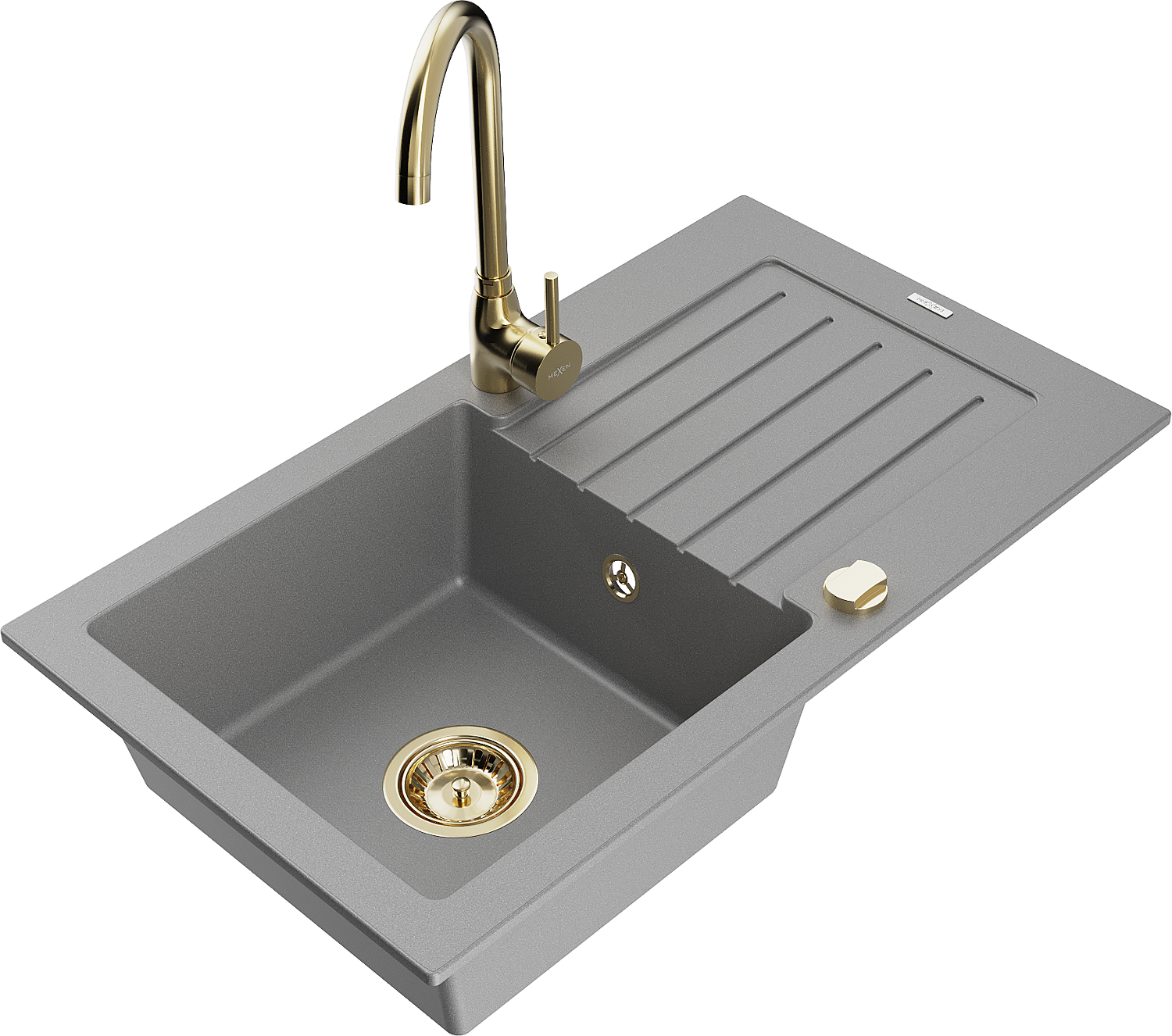 Mexen Pablo chiuvetă de bucătărie din granit cu 1 cuvă și baterie Telma, gri - 6510-71-670200-50