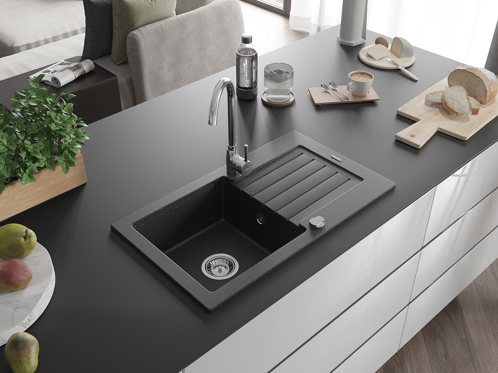 Chiuveta este confecționată din granit de înaltă calitate. Este un complement elegant și, mai ales, practic pentru fiecare bucătărie, indiferent de stilul său. Durabilitatea de înaltă calitate și granit asigură mulți ani de utilizare.
