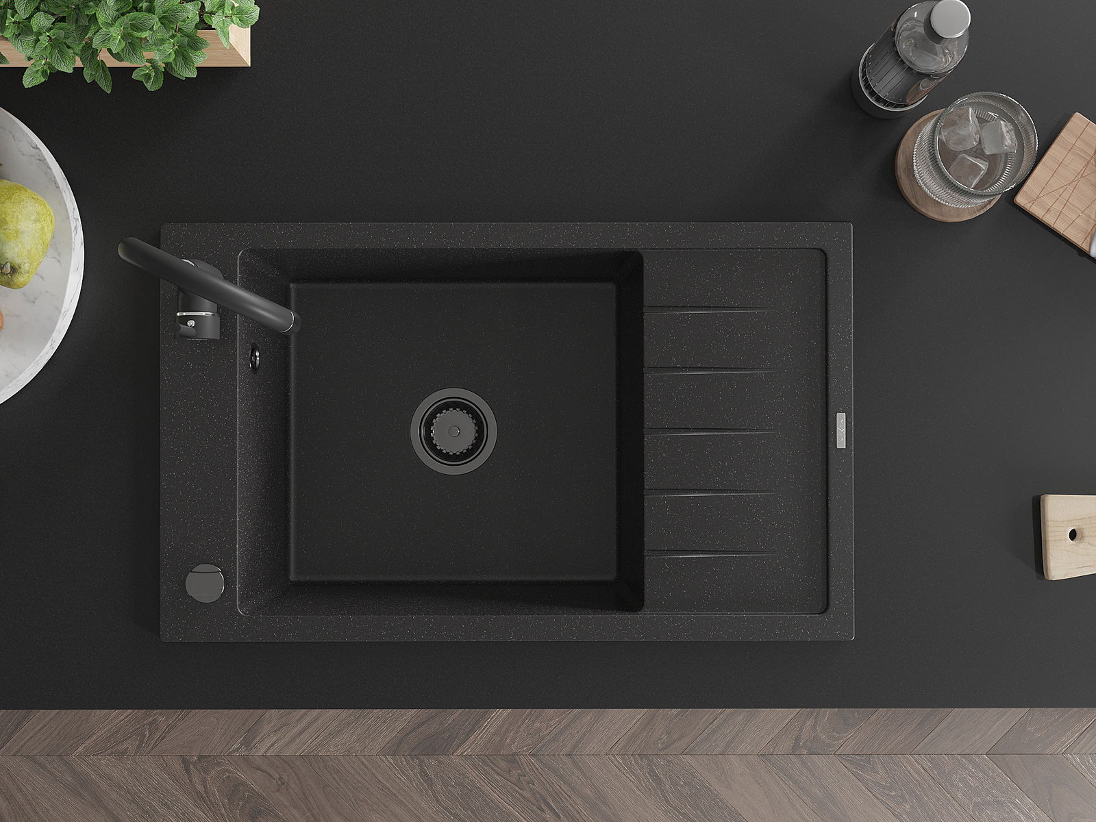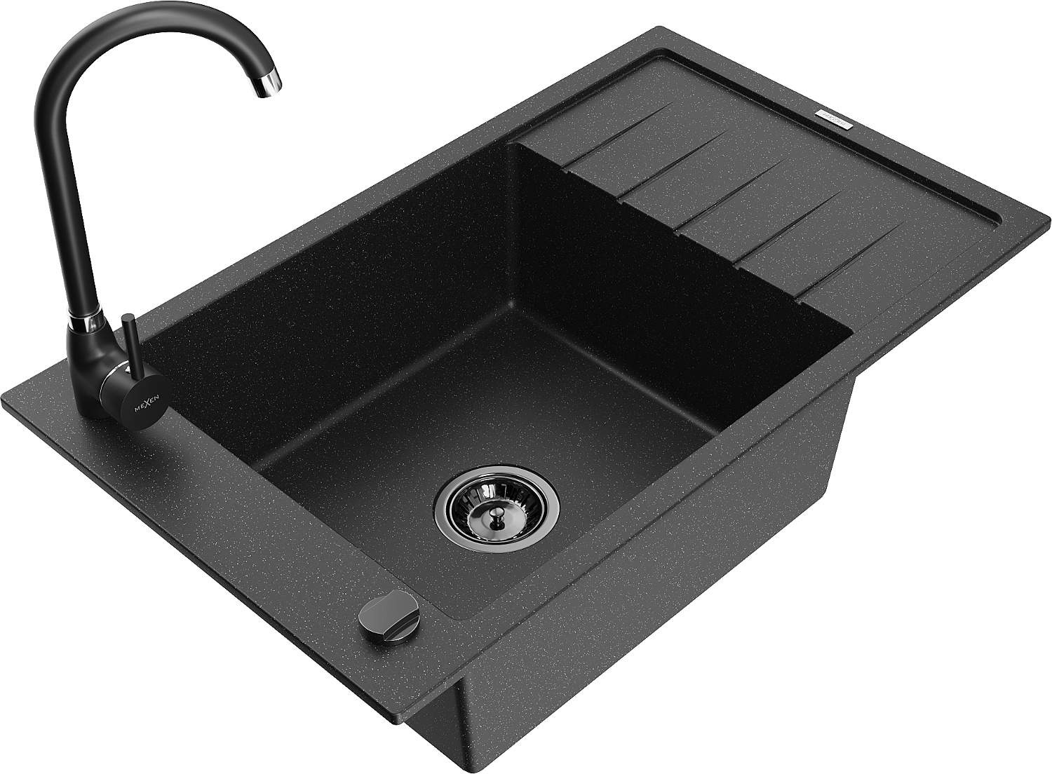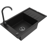 Mexen Elias chiuvetă de granit cu 1 compartiment și scurgător, cu baterie de bucătărie Telma, neagru/argintiu