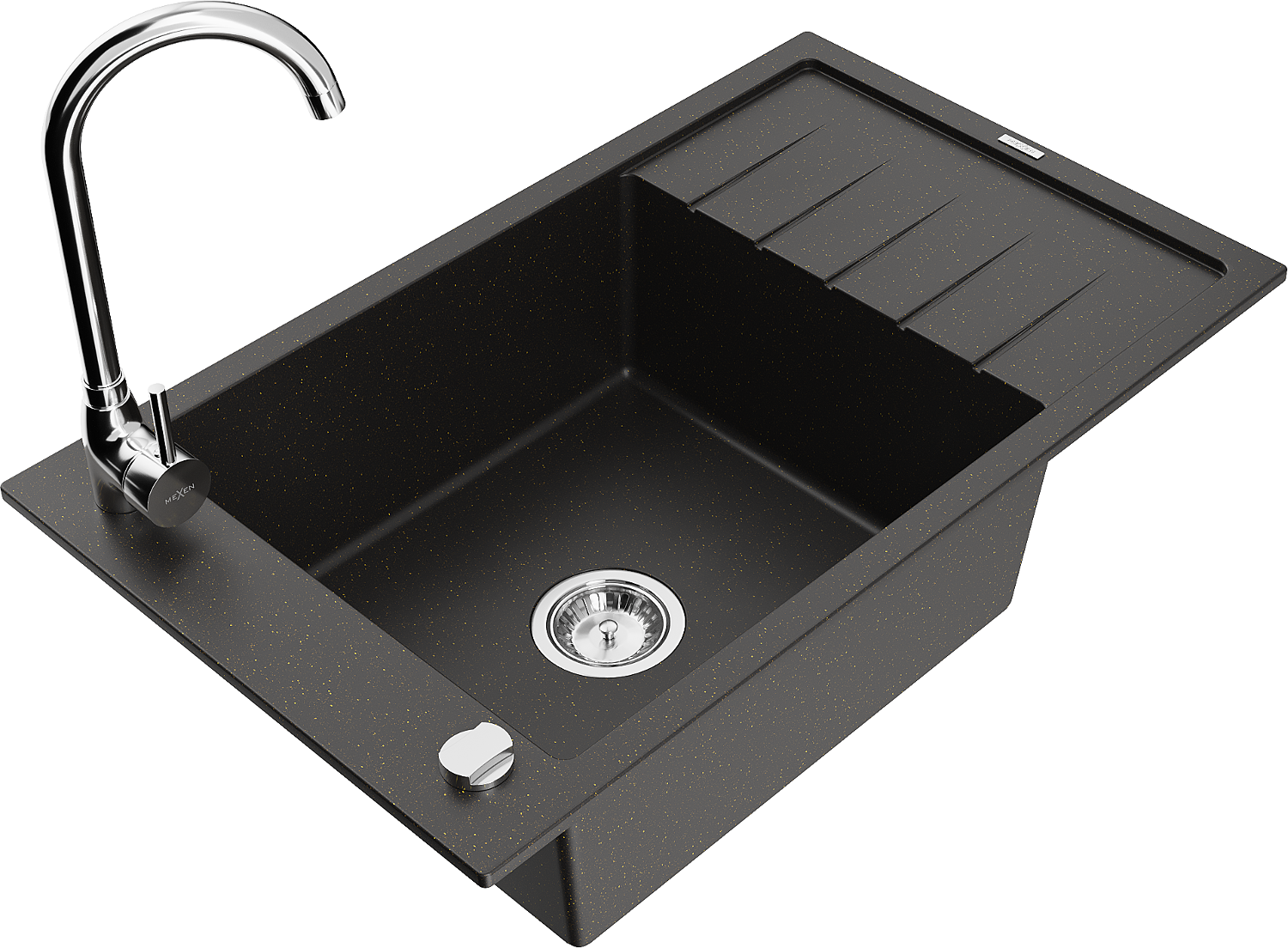 Mexen Elias chiuvetă din granit cu 1 cuvă și scurgător și baterie de bucătărie Telma, negru/auriu - 6511-75-670200-00