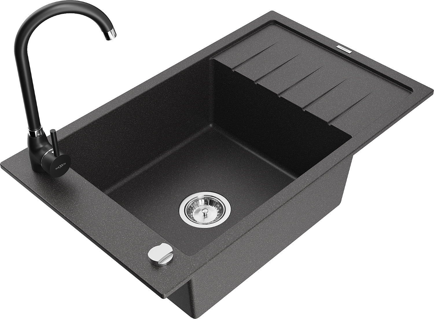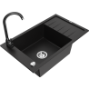 Mexen Elias chiuvetă de granit cu 1 bazin cu scurgător și baterie de bucătărie Telma, negru pătat - 6511-76-670200-70