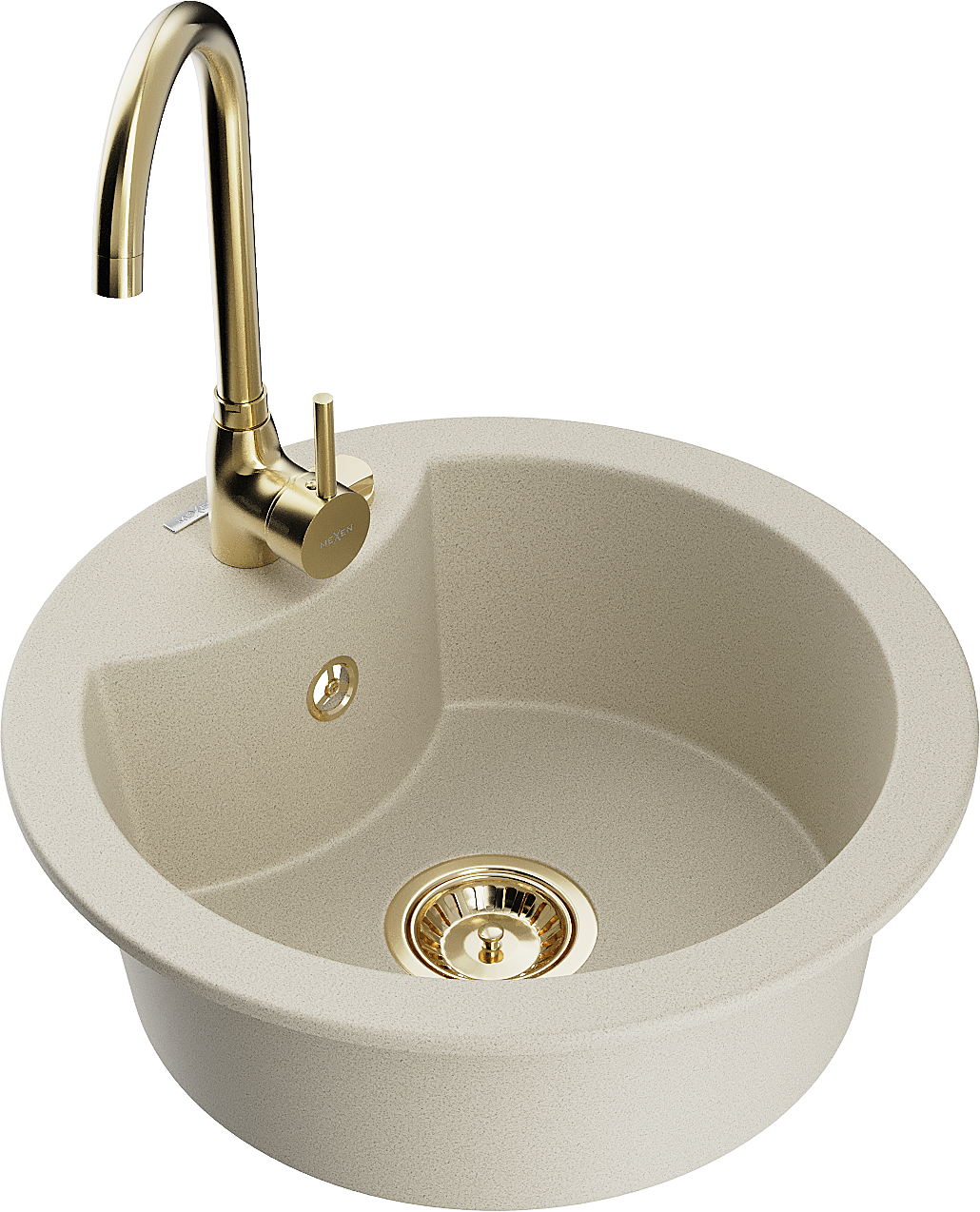 Mexen Diego chiuvetă din granit cu 1 compartiment și baterie de bucătărie Telma, bej - 6512-69-670200-50