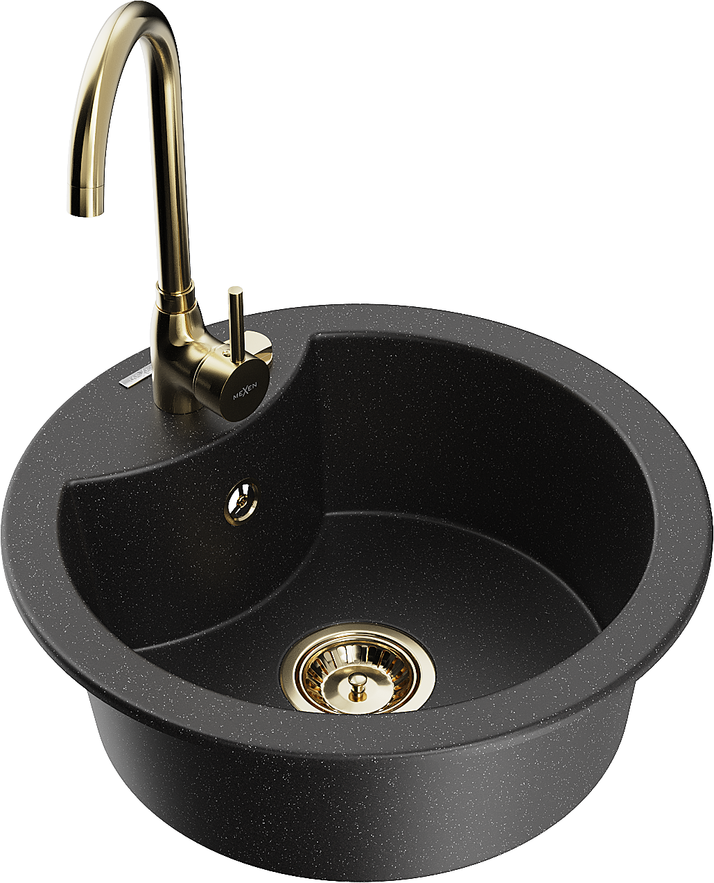 Mexen Diego chiuvetă bucătărie granit 1-cameră cu baterie Telma, negru/argintiu - 6512-73-670200-50