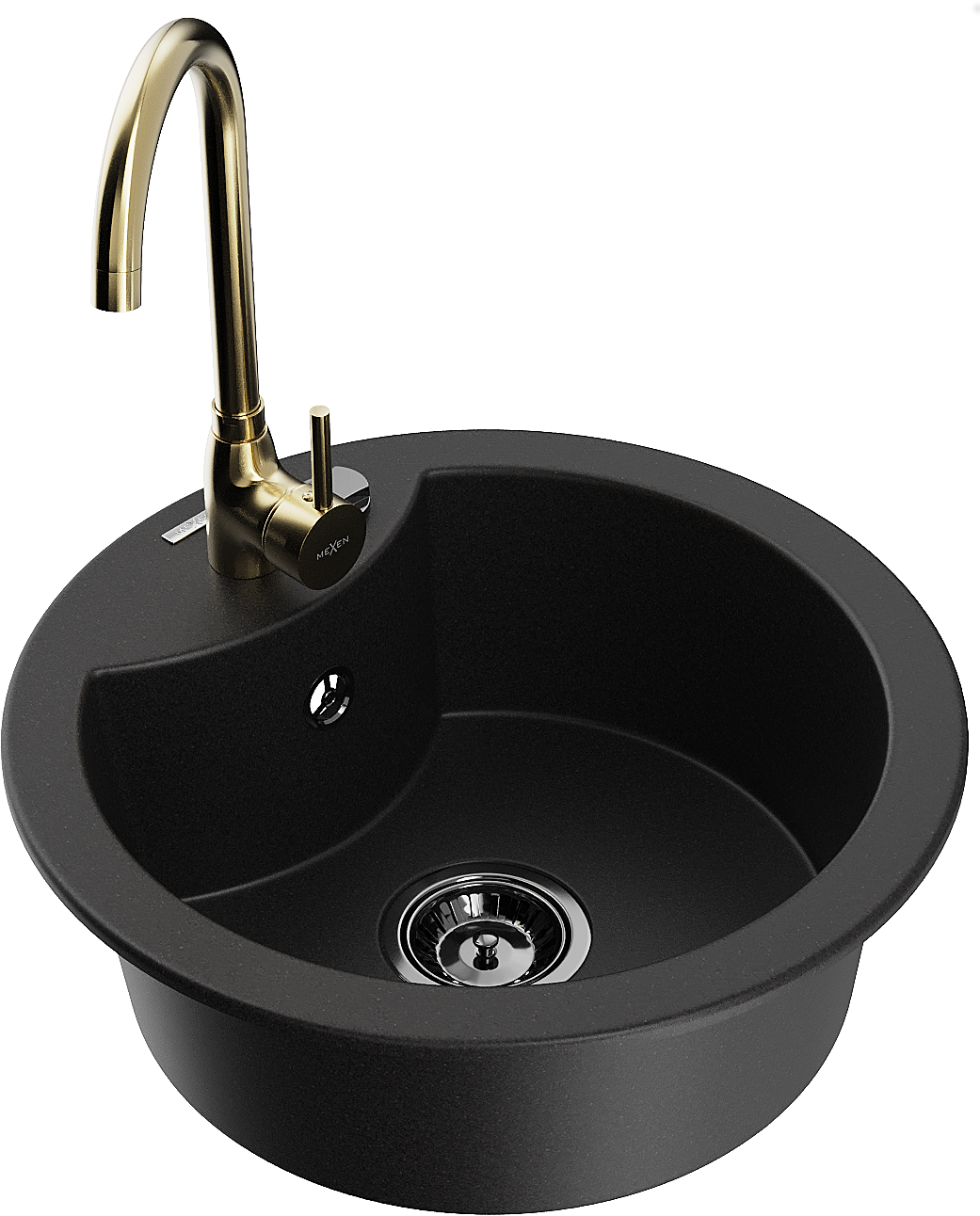 Mexen Diego chiuvetă de granit cu 1 compartiment și baterie de bucătărie Telma, negru - 6512-77-670200-50-B