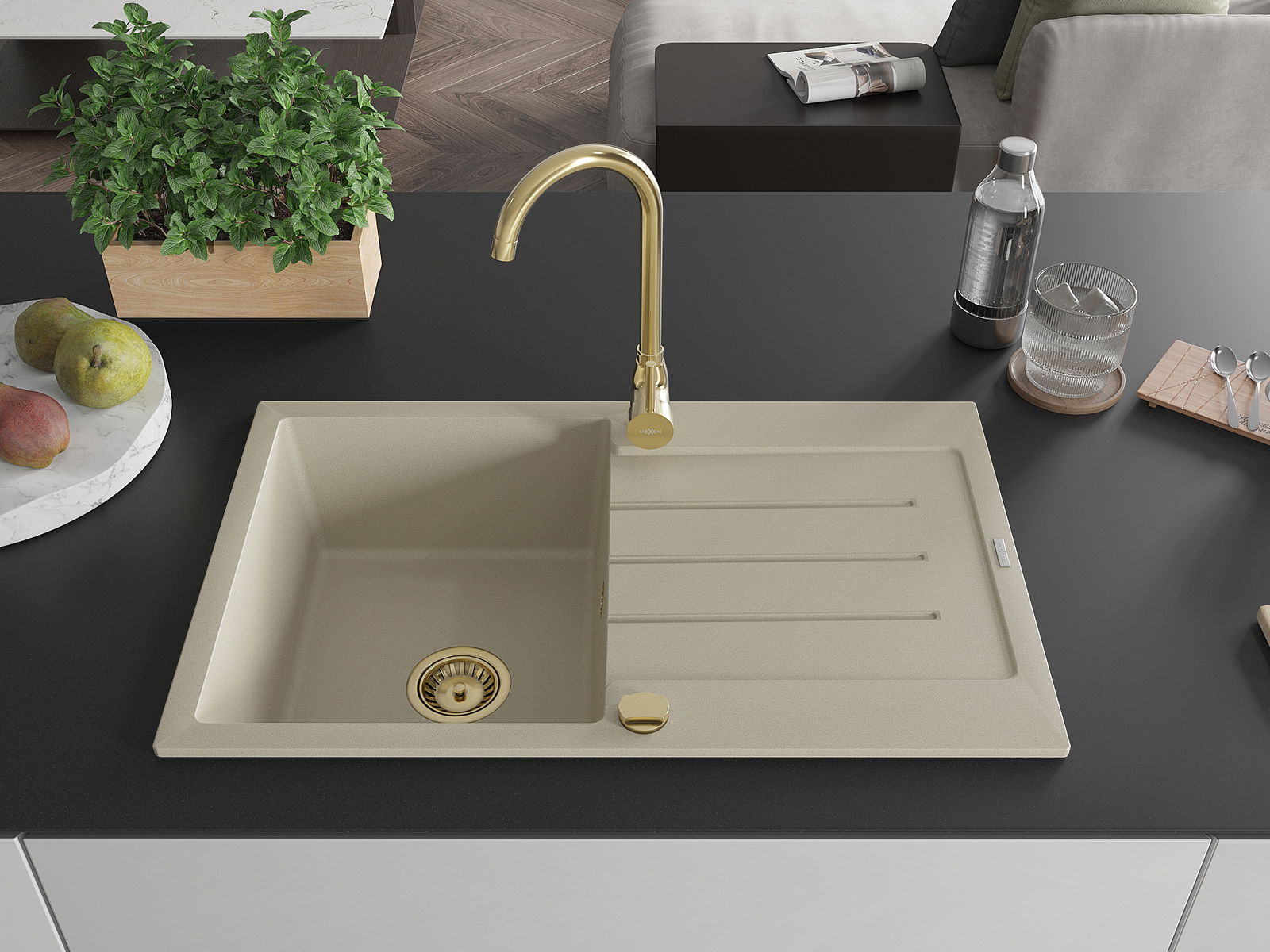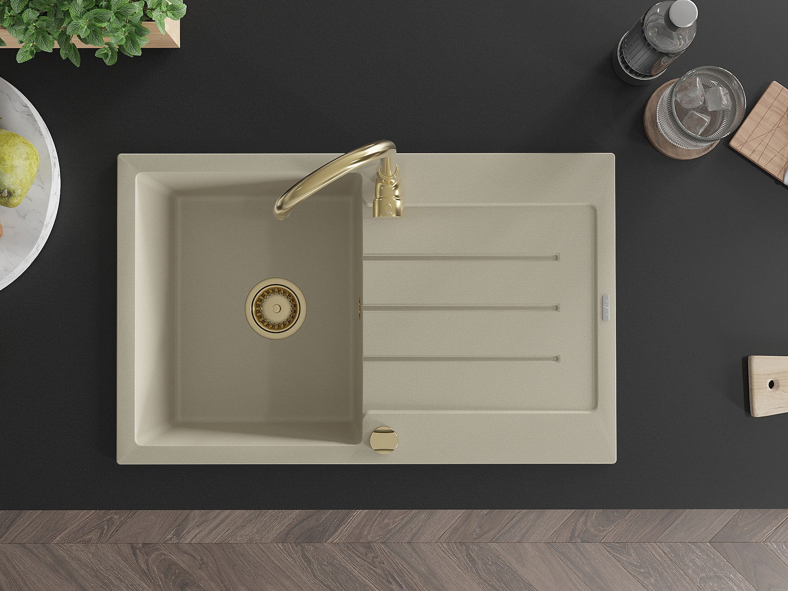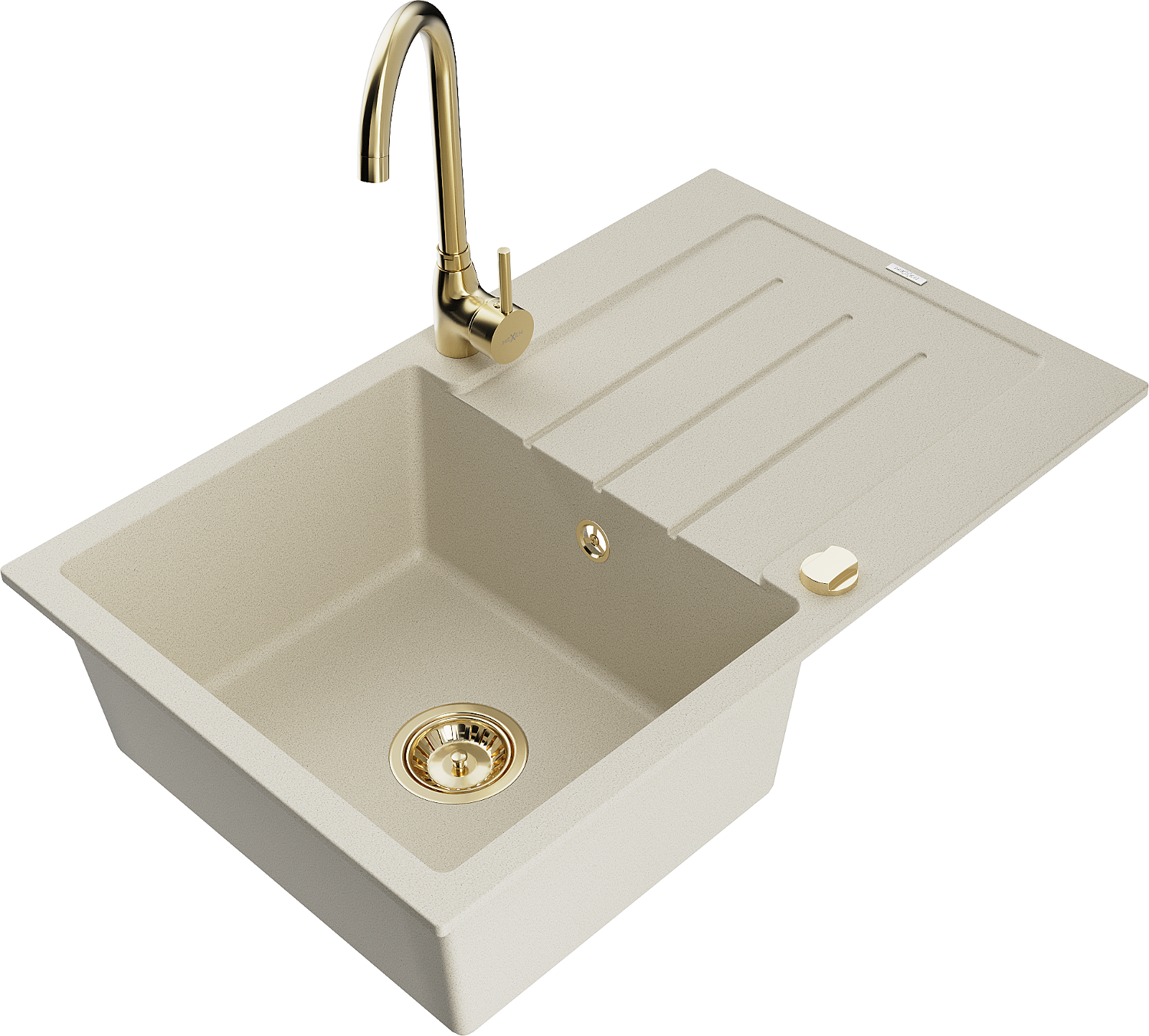 Mexen Bruno chiuvetă de granit cu 1 compartiment, cu scurgător și baterie de bucătărie Telma, bej - 6513-69-670200-50