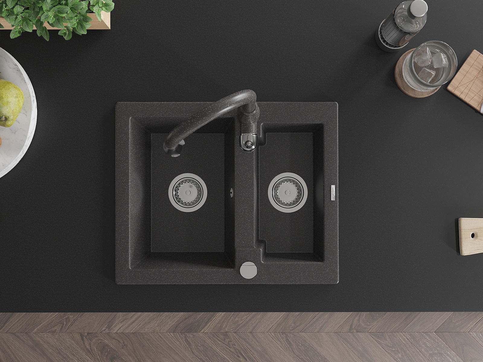 Mexen Carlos chiuvetă granit 1,5-camere cu baterie de bucătărie Savita, negru pătat - 6518-76-672601-76