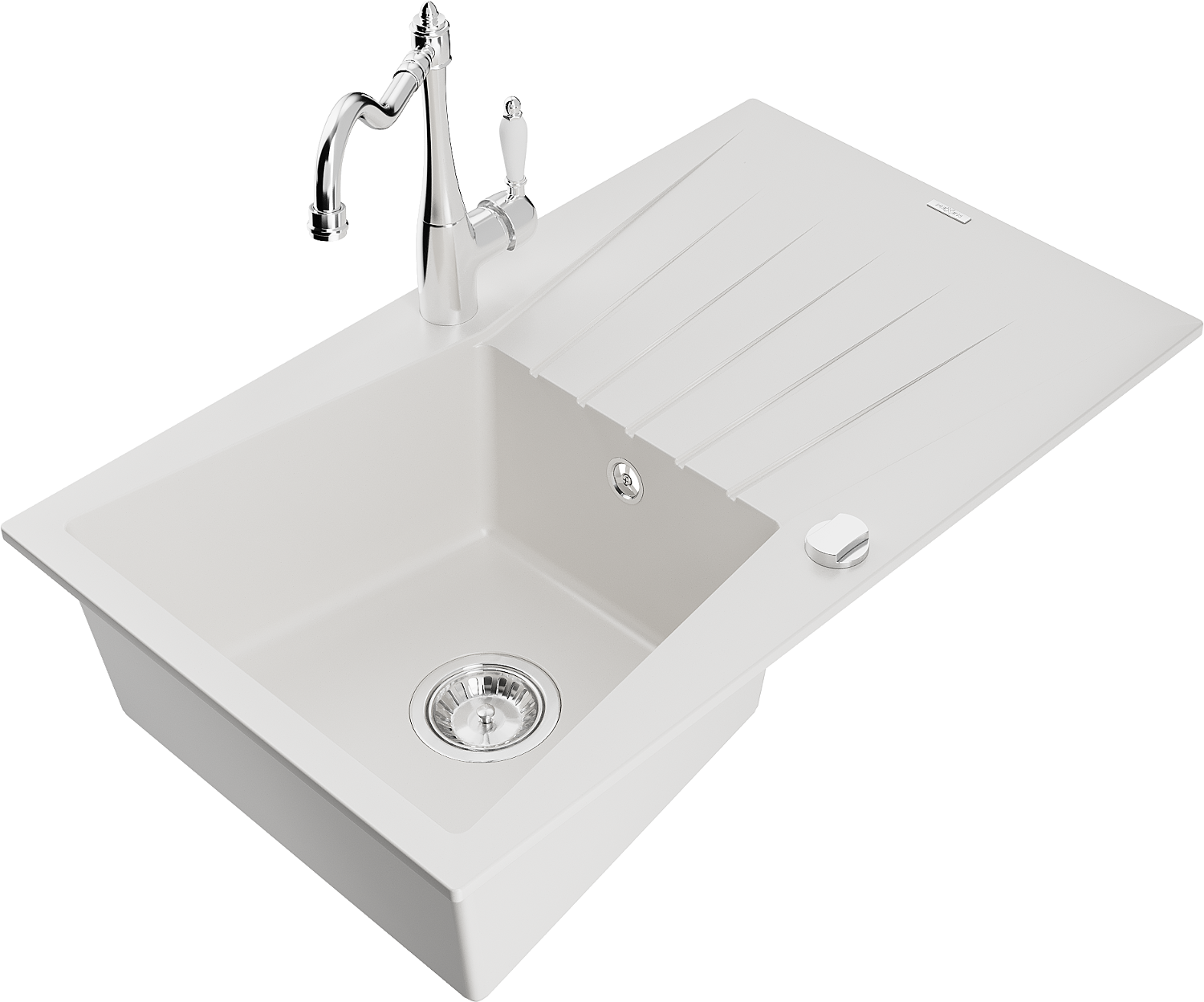 Suprafața chiuvetei este rezistentă la pete și decolorarea, datorită căreia este ușor de curățat și își păstrează culoarea mult timp. Estetică și practic completarea fiecărei bucătării.