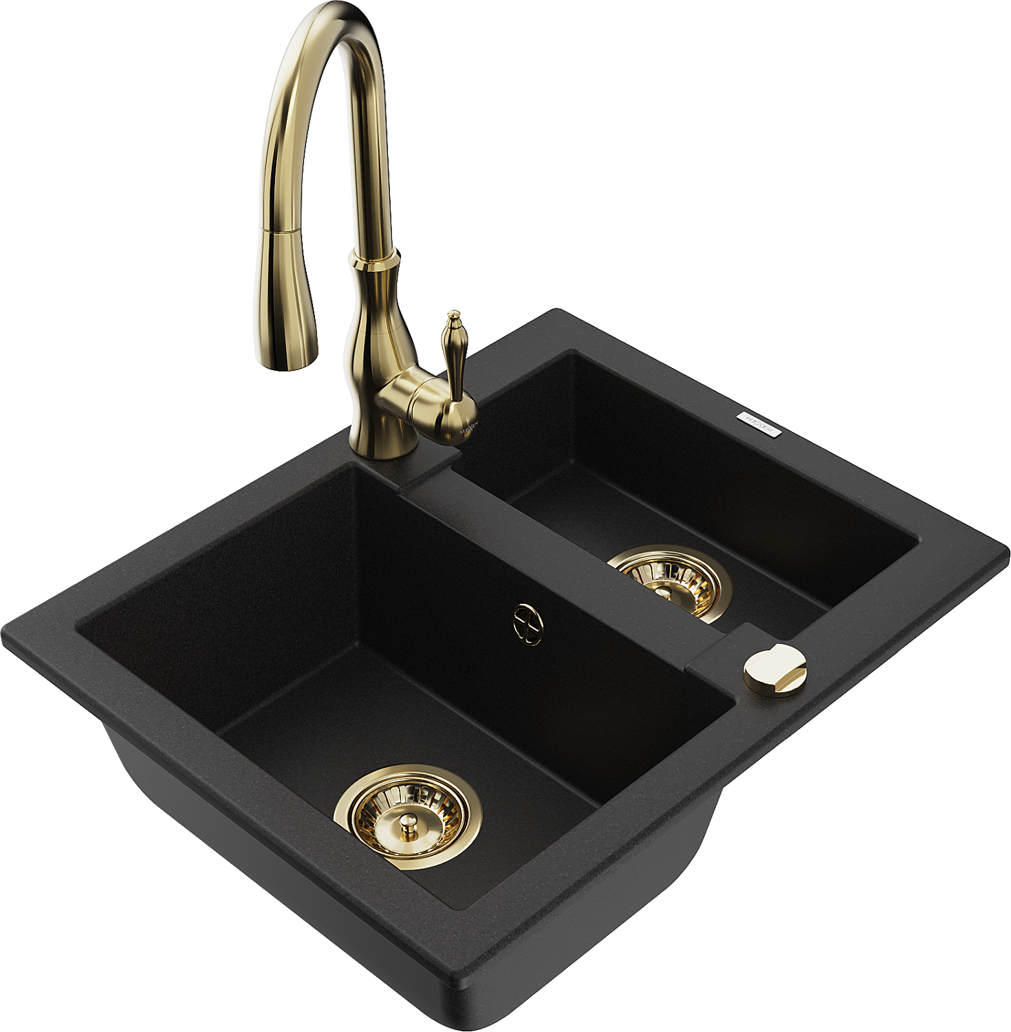 Mexen Carlos chiuvetă din granit cu 1,5 cuve cu baterie de bucătărie Savita, negru - 6518-77-672601-50