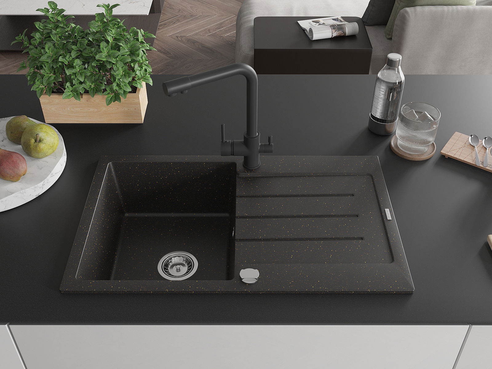 Chiuveta a fost realizată din granit de înaltă calitate. Reprezintă un complement elegant și, mai presus de toate, practic pentru orice bucătărie, indiferent de stilul său. Calitatea înaltă și durabilitatea granitului asigură o utilizare de lungă durată.