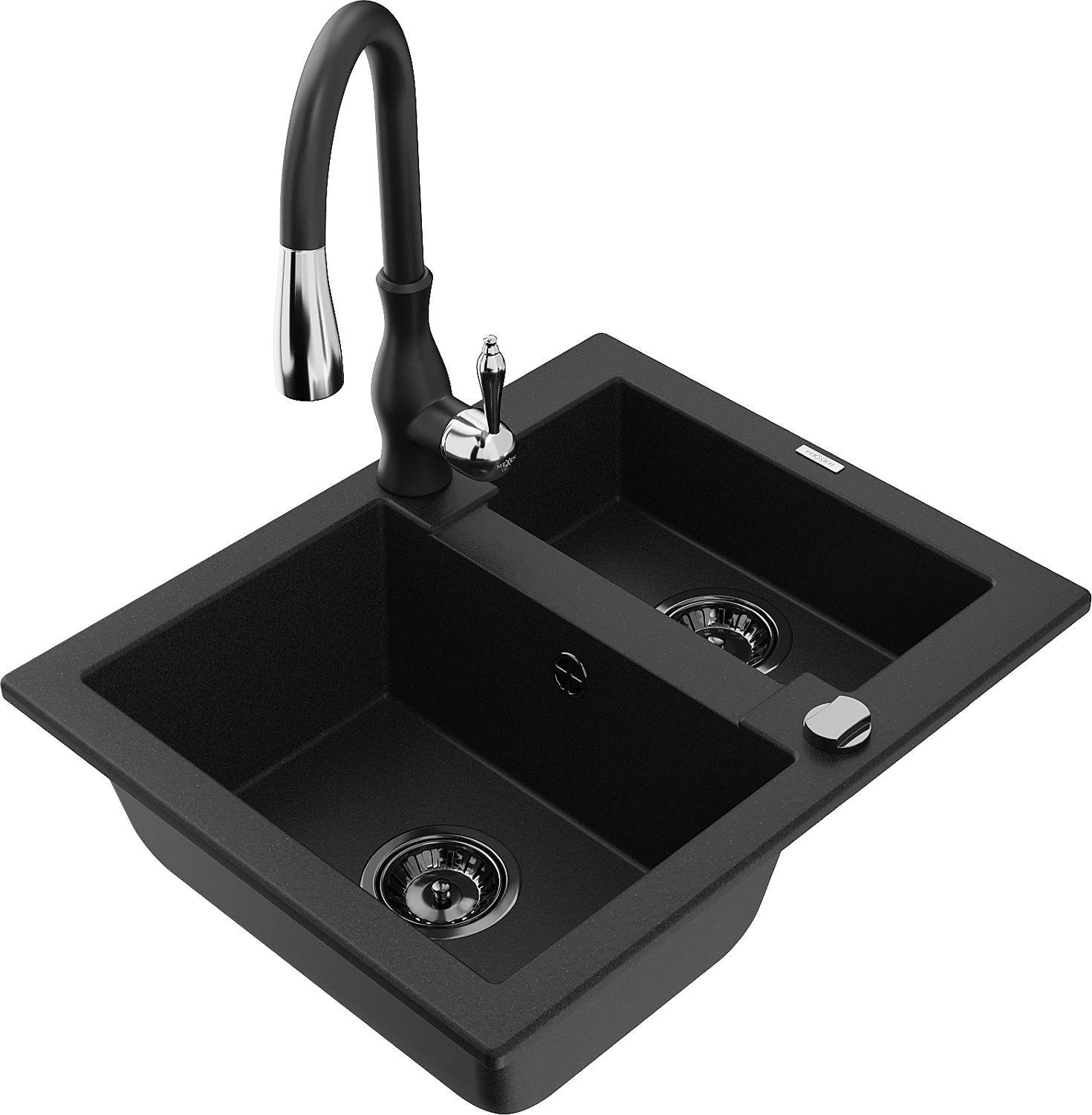 Mexen Carlos chiuvetă de granit cu 1,5 compartimente și baterie de bucătărie Savita, neagră - 6518-77-672601-70-B