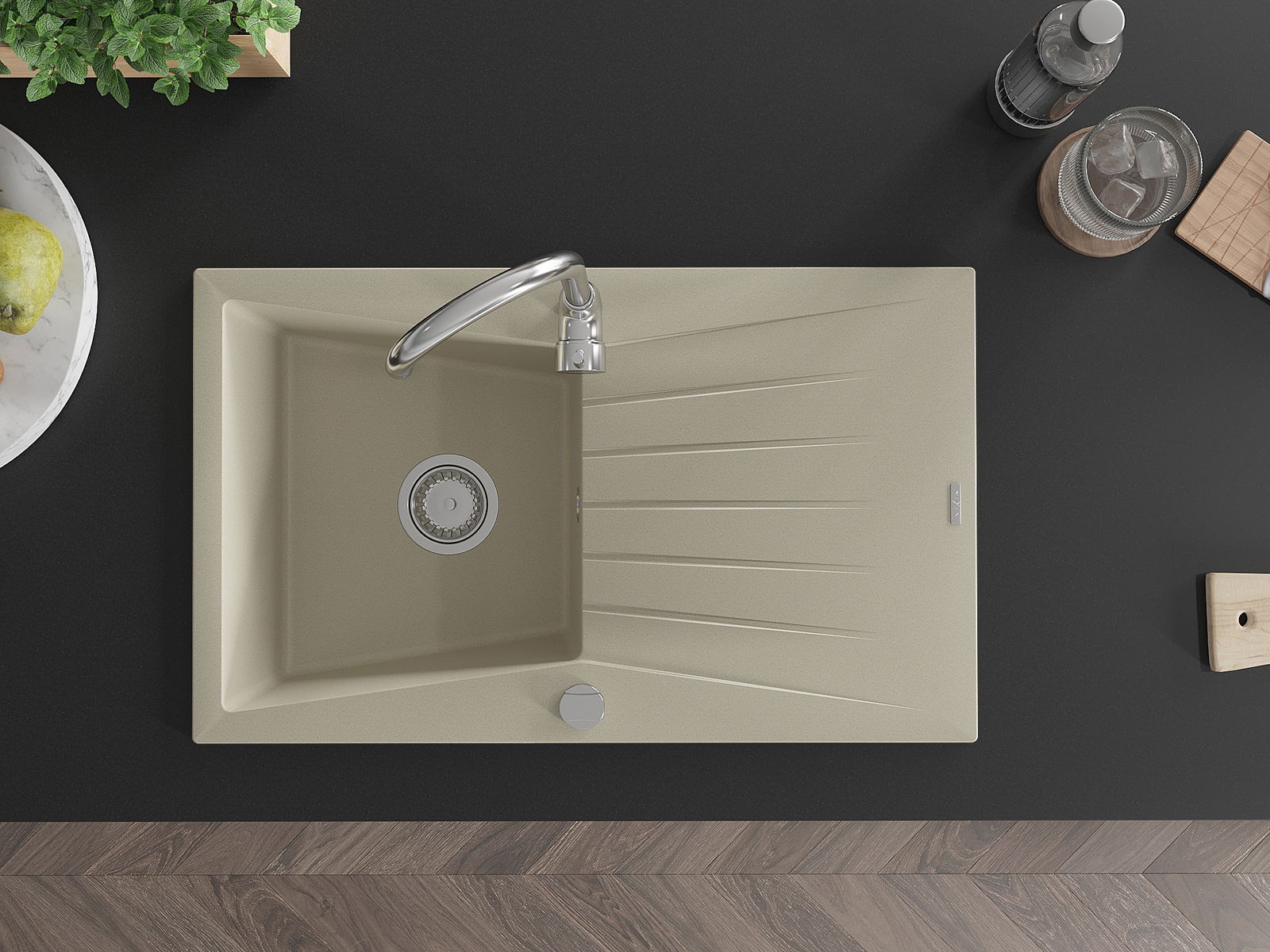 Mexen Cesar chiuvetă de granit cu 1 cuvă și scurgător și baterie de bucătărie Telma, bej - 6514-69-670200-00
