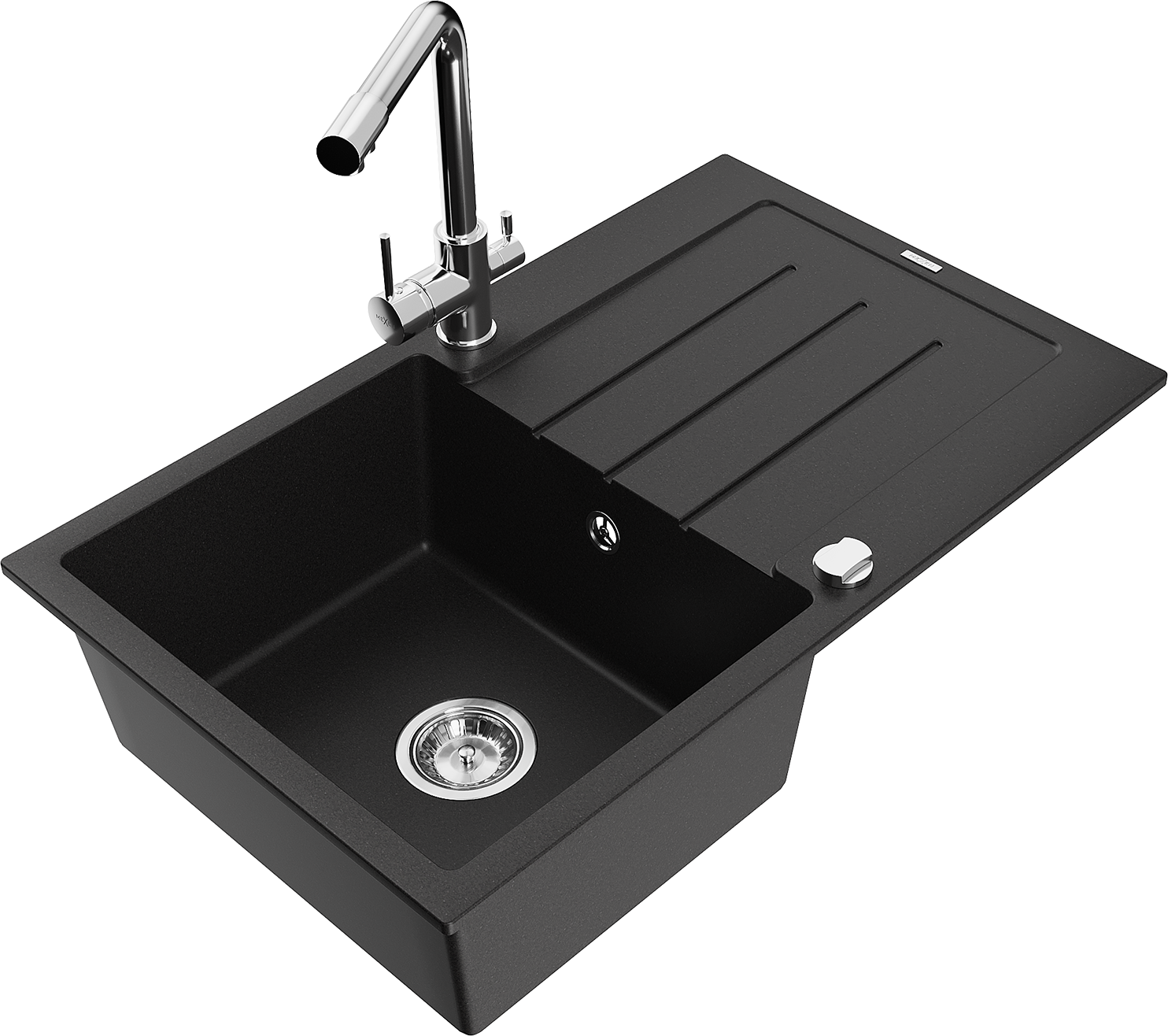 Mexen Bruno chiuvetă de bucătărie din granit cu 1 compartiment cu scurgător și baterie Duero, negru - 6513-77-671600-00
