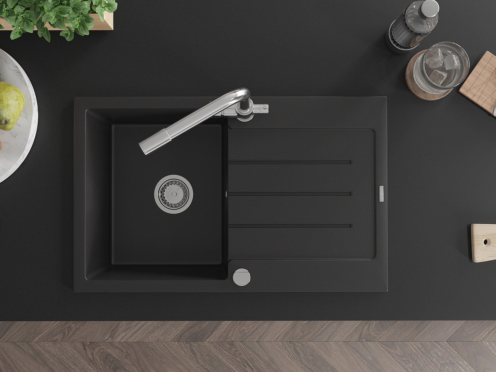 Chiuveta a fost realizată din granit de înaltă calitate. Reprezintă un complement elegant și, mai presus de toate, practic pentru orice bucătărie, indiferent de stilul acesteia. Calitatea înaltă și durabilitatea granitului asigură o utilizare de lungă durată.