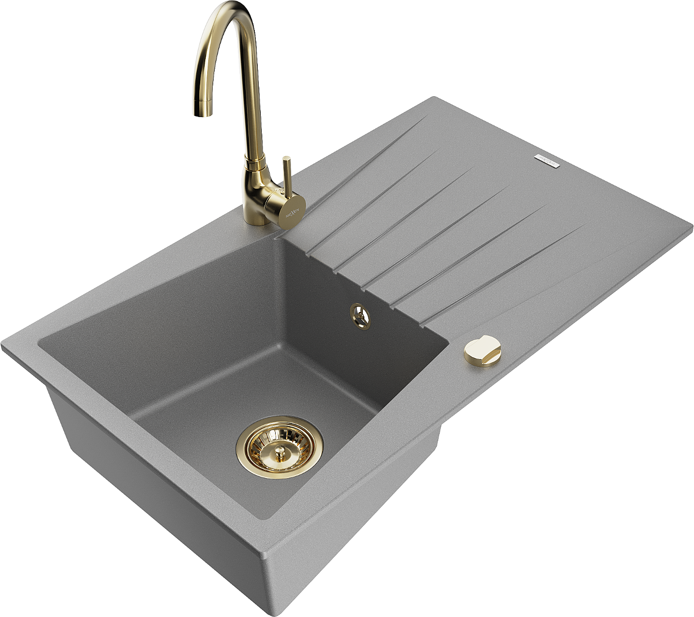 Mexen Cesar chiuvetă de granit cu 1 compartiment cu scurgător și baterie de bucătărie Telma, gri - 6514-71-670200-50