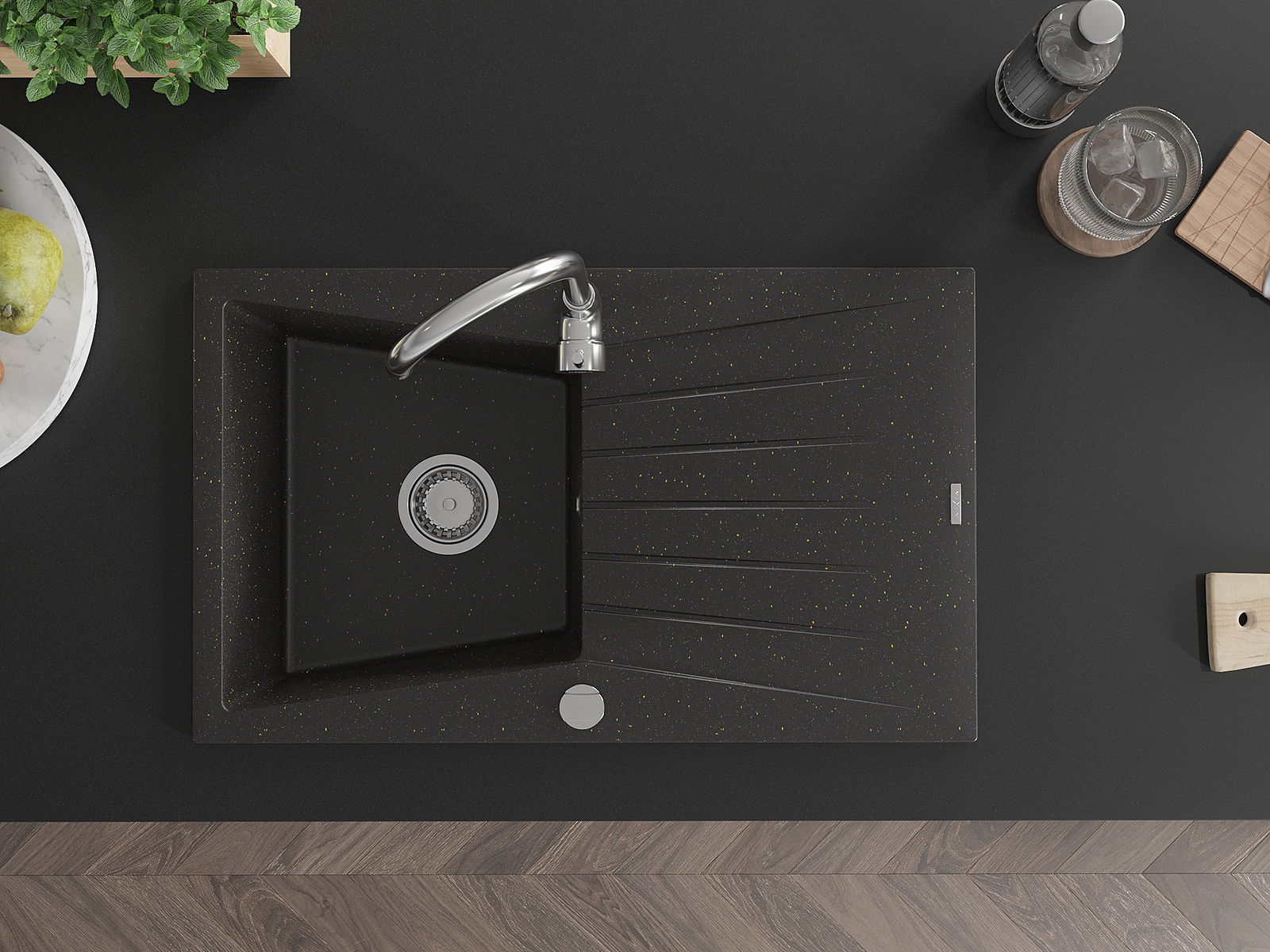 Chiuveta a fost realizată din granit de înaltă calitate. Reprezintă un complement elegant și, mai presus de toate, practic pentru orice bucătărie, indiferent de stilul acesteia. Calitatea înaltă și durabilitatea granitului asigură o utilizare de lungă durată.