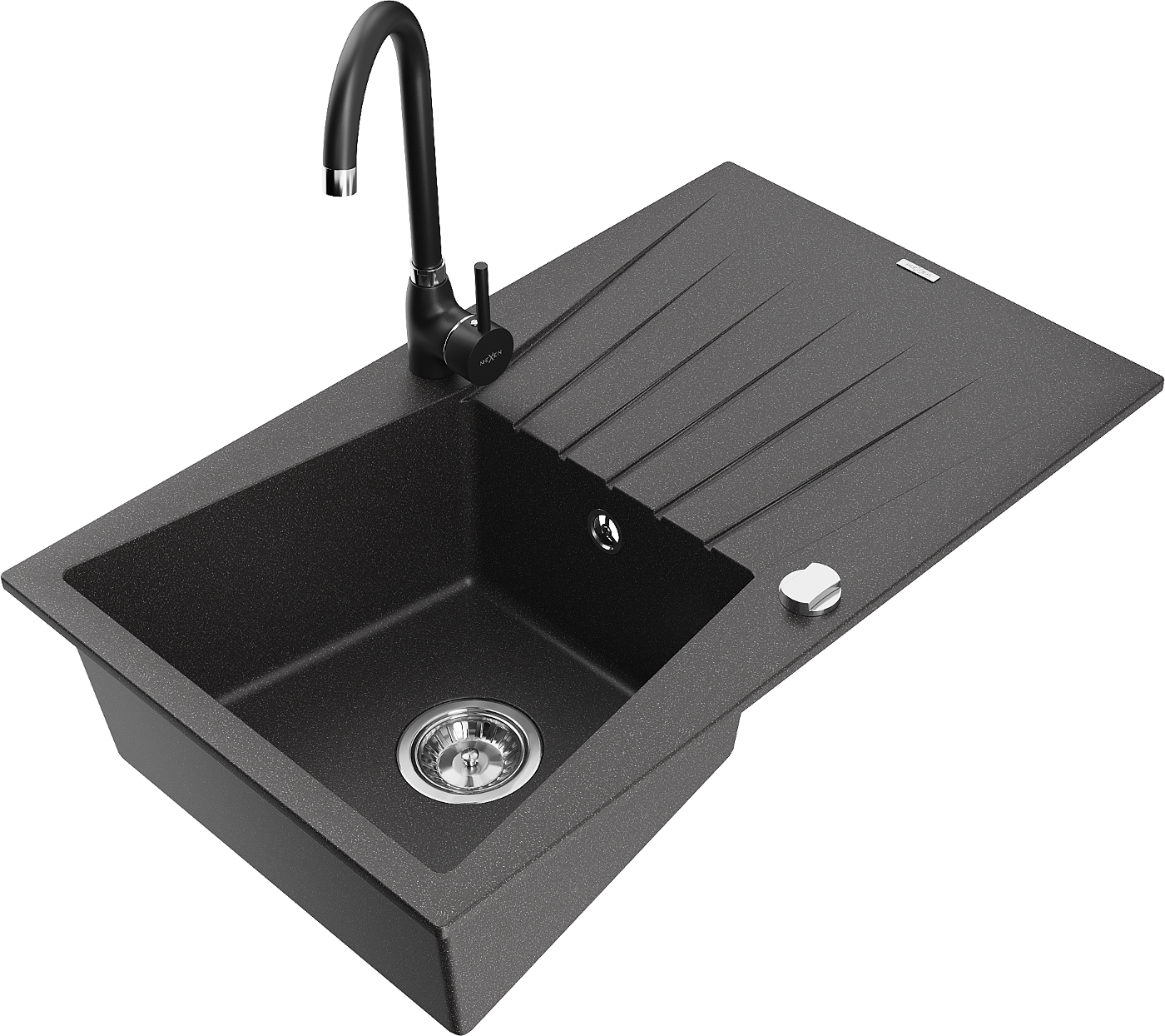 Mexen Cesar chiuvetă de granit cu o cuvă și picurător și baterie de bucătărie Telma, negru pătat - 6514-76-670200-70