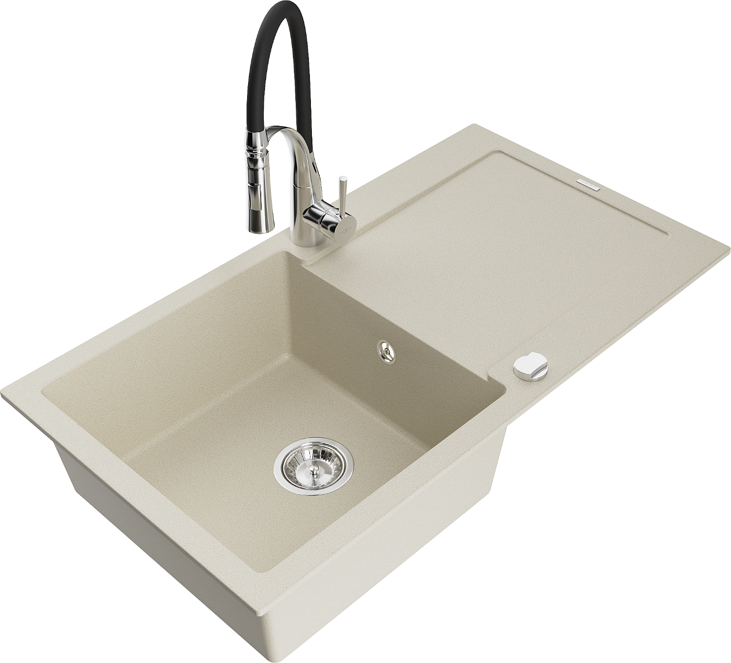 Mexen Leo chiuvetă granit 1-cu o singură cuvă cu scurgător și baterie de bucătărie Aster, bej - 6501-69-73450-07