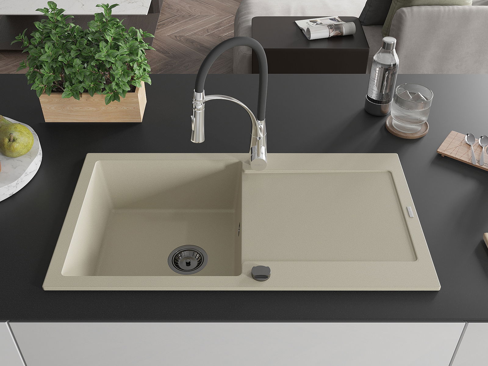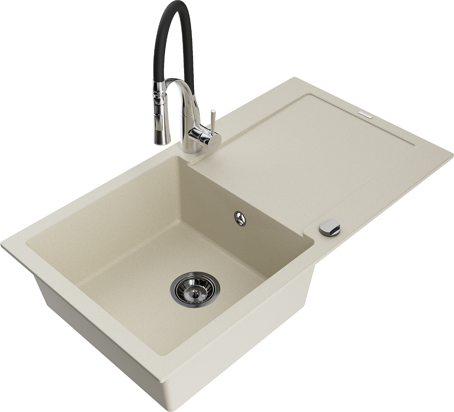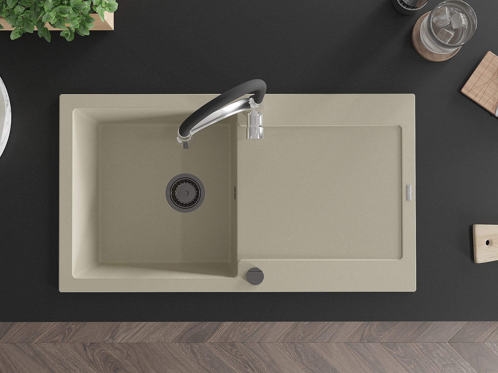 Mexen Leo chiuvetă de granit cu 1 compartiment cu scurgător și robinet de bucătărie Aster, bej - 6501-69-73450-07-B