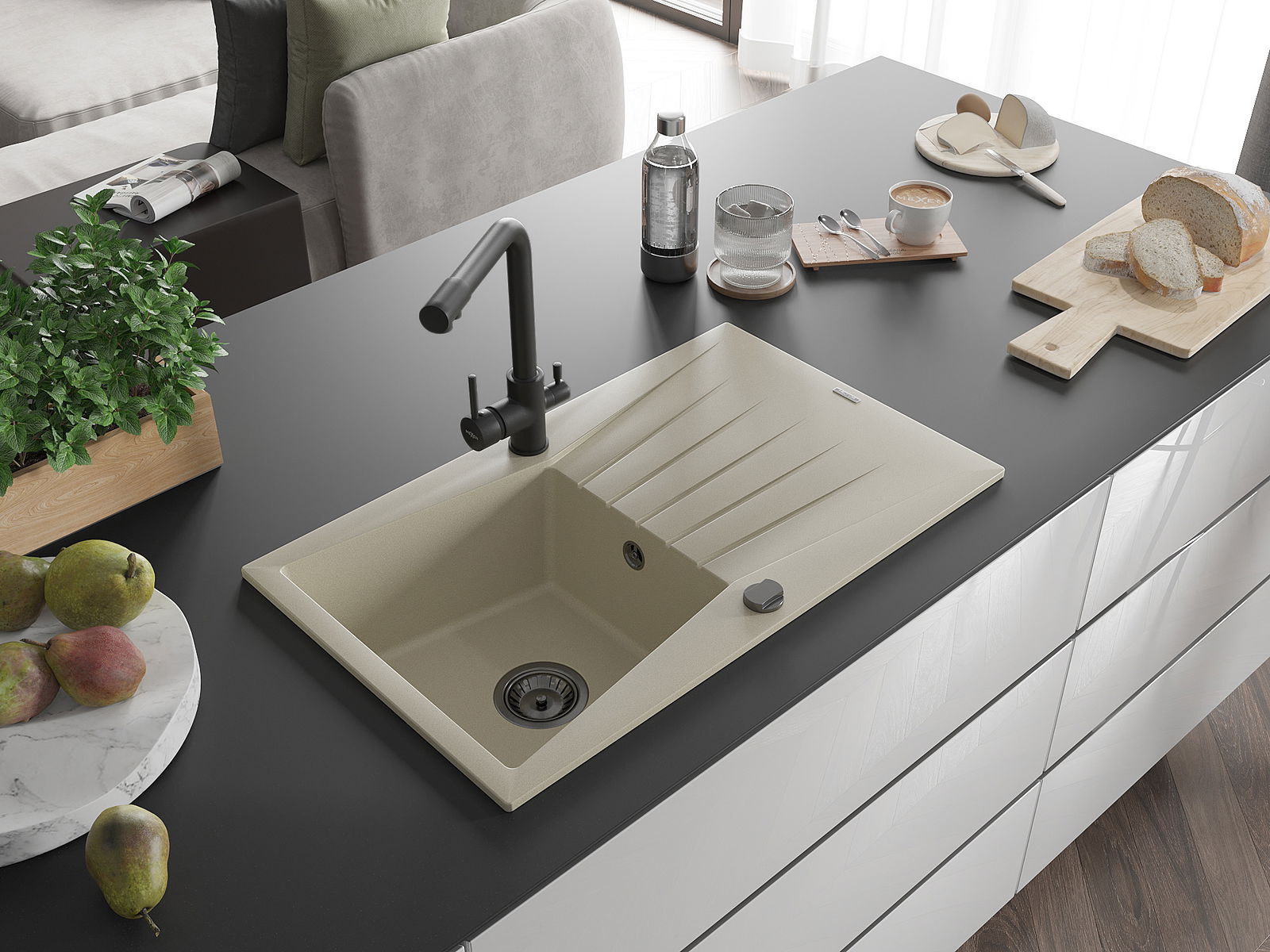 Chiuveta a fost realizată din granit de înaltă calitate. Reprezintă un complement elegant și, mai presus de toate, practic pentru orice bucătărie, indiferent de stilul său. Calitatea înaltă și durabilitatea granitului asigură o utilizare de lungă durată.