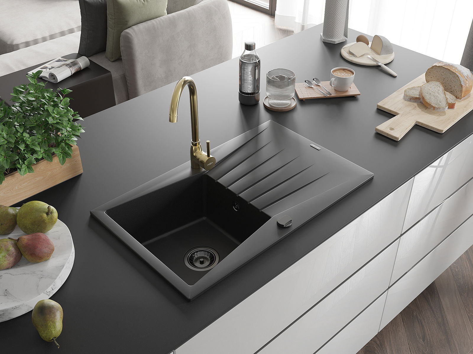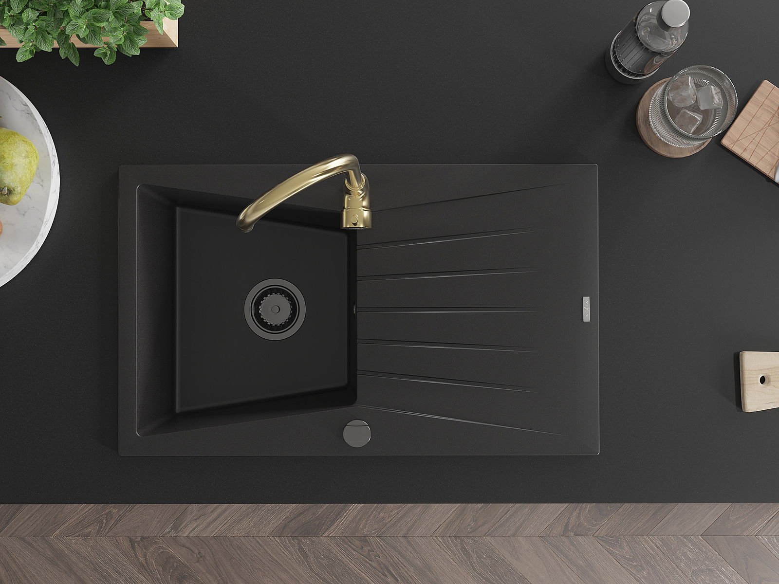 Suprafața chiuvetei este rezistentă la pete și decolorarea, datorită căreia este ușor de curățat și își păstrează culoarea mult timp. Estetică și practic completarea fiecărei bucătării.
