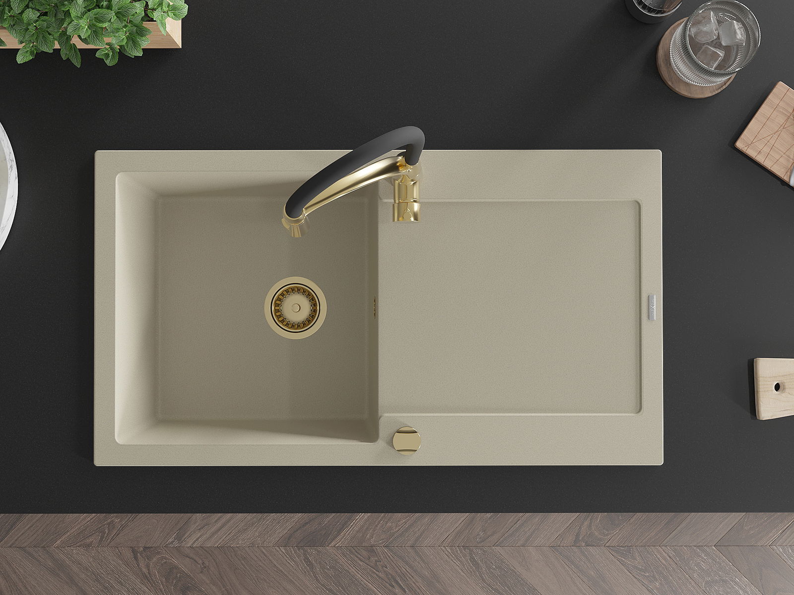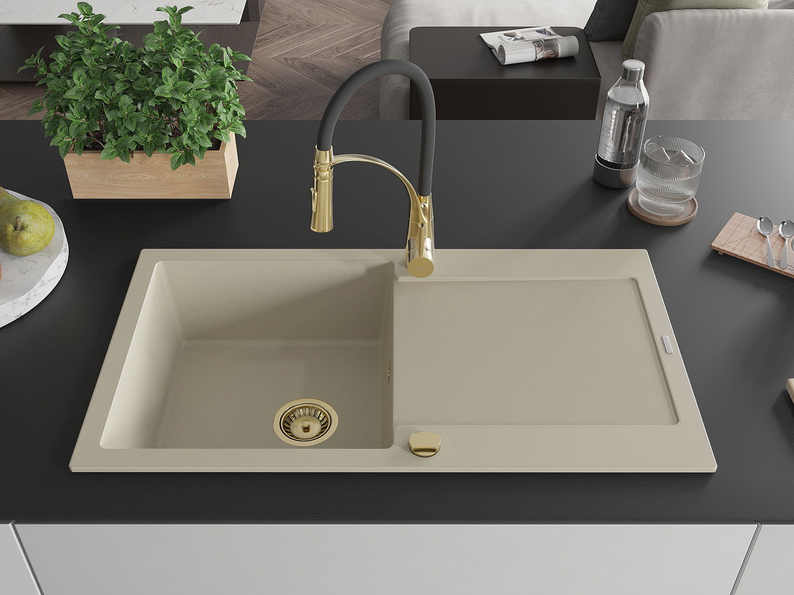 Suprafața chiuvetei este rezistentă la pete și decolorare, ceea ce o face ușor de întreținut și își păstrează culoarea pentru o perioadă lungă de utilizare. Un complet estetic și practic pentru orice bucătărie.