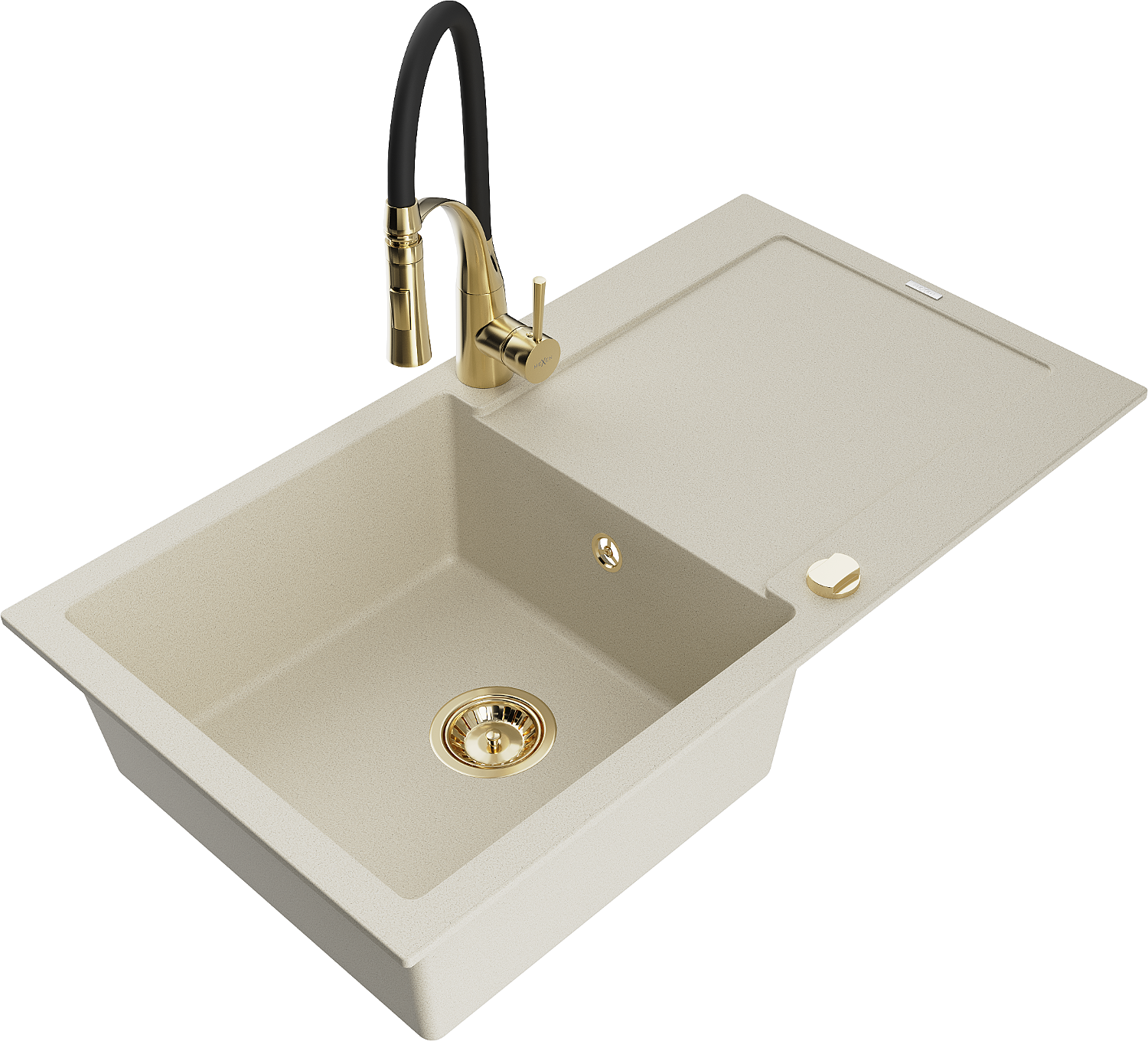 Mexen Leo chiuvetă de granit cu 1 compartiment, cu scurgător și baterie de bucătărie Aster, bej - 6501-69-73450-57-G