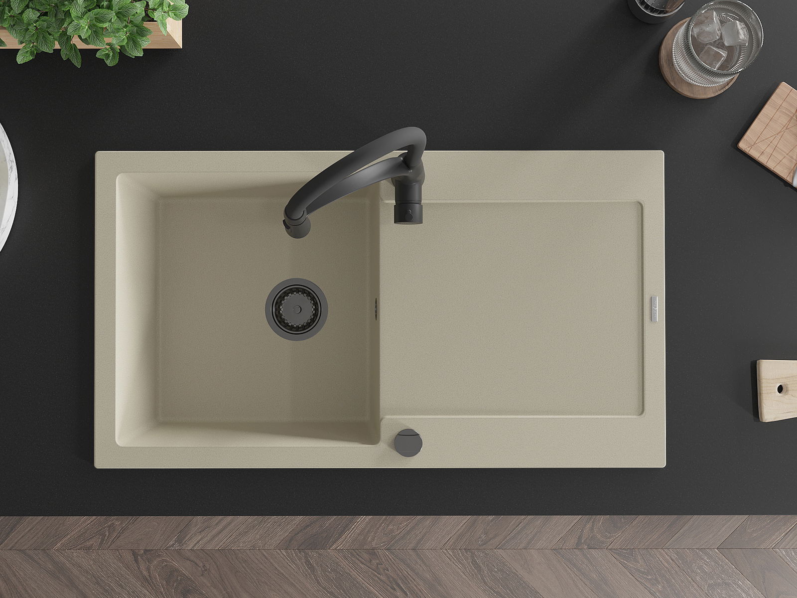 Suprafața chiuvetei este rezistentă la pete și decolorarea, datorită căreia este ușor de curățat și își păstrează culoarea mult timp. Estetică și practic completarea fiecărei bucătării.