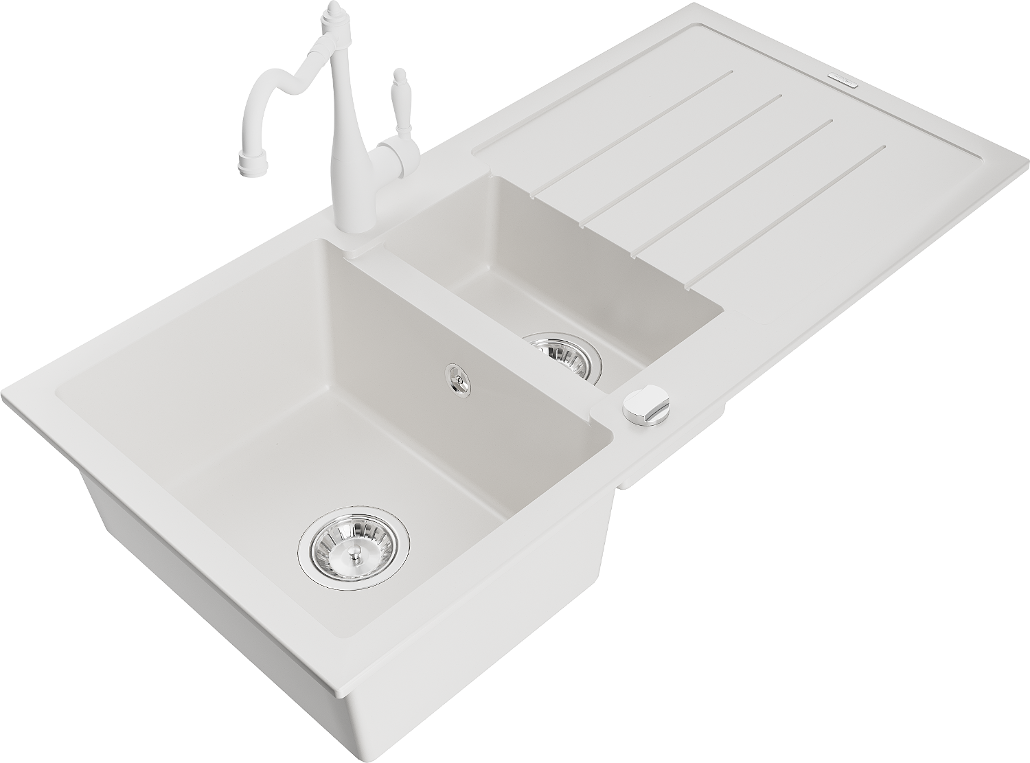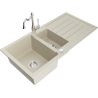 Mexen Andres chiuvetă granit 1,5-cupe cu scurgător și baterie bucătărie Carla, alb - 6515-20-670700-20