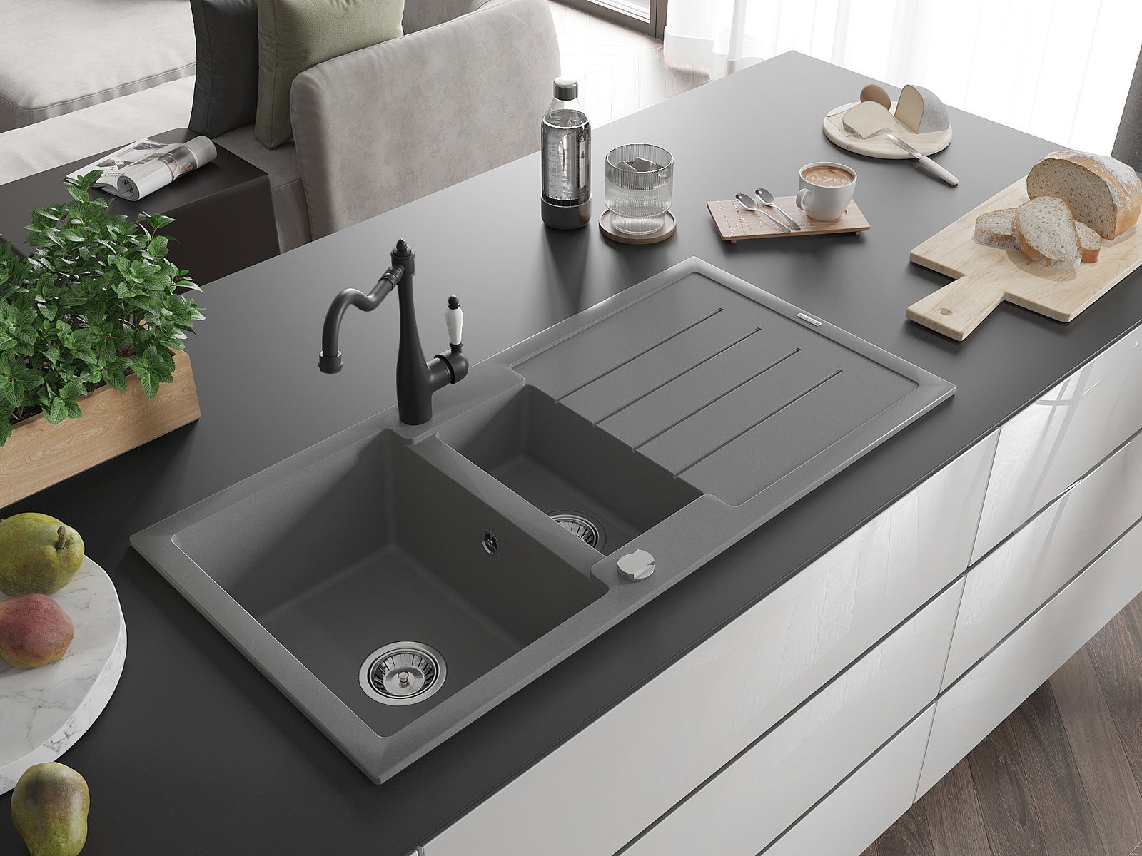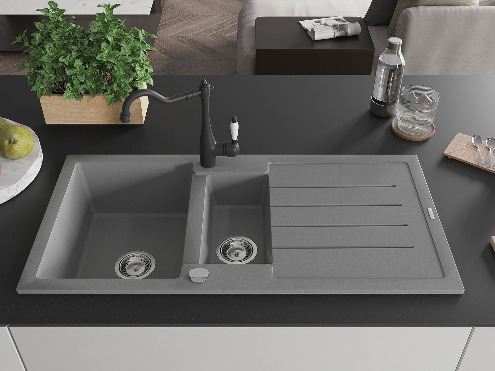 Suprafața chiuvetei este rezistentă la pete și decolorarea, datorită căreia este ușor de curățat și își păstrează culoarea mult timp. Estetică și practic completarea fiecărei bucătării.