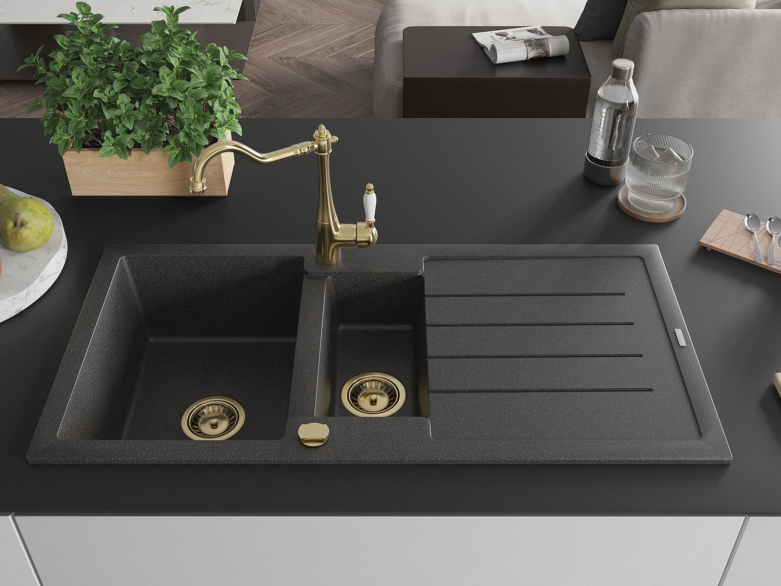 Chiuveta este confecționată din granit de înaltă calitate. Este un complement elegant și, mai ales, practic pentru fiecare bucătărie, indiferent de stilul său. Durabilitatea de înaltă calitate și granit asigură mulți ani de utilizare.