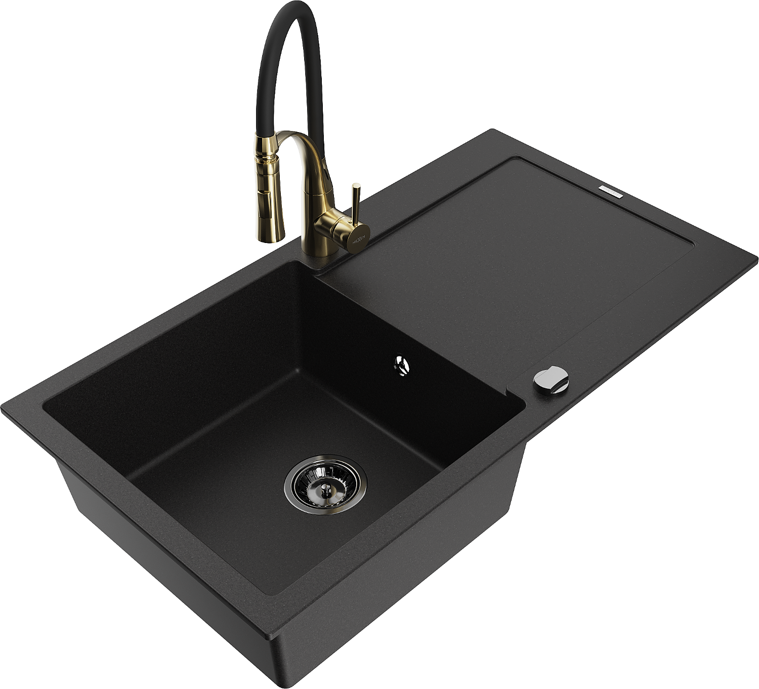 Mexen Leo chiuvetă de granit cu 1 cuvă, cu scurgător și baterie de bucătărie Aster, negru - 6501-77-73450-57-B