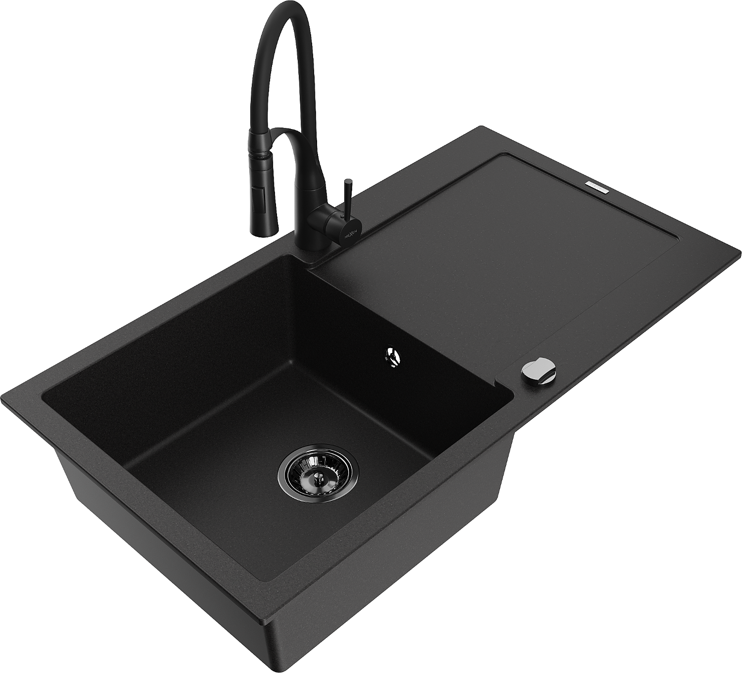 Mexen Leo chiuvetă de granit cu 1 compartiment și scurgător și baterie de bucătărie Aster, negru - 6501-77-73450-70-B