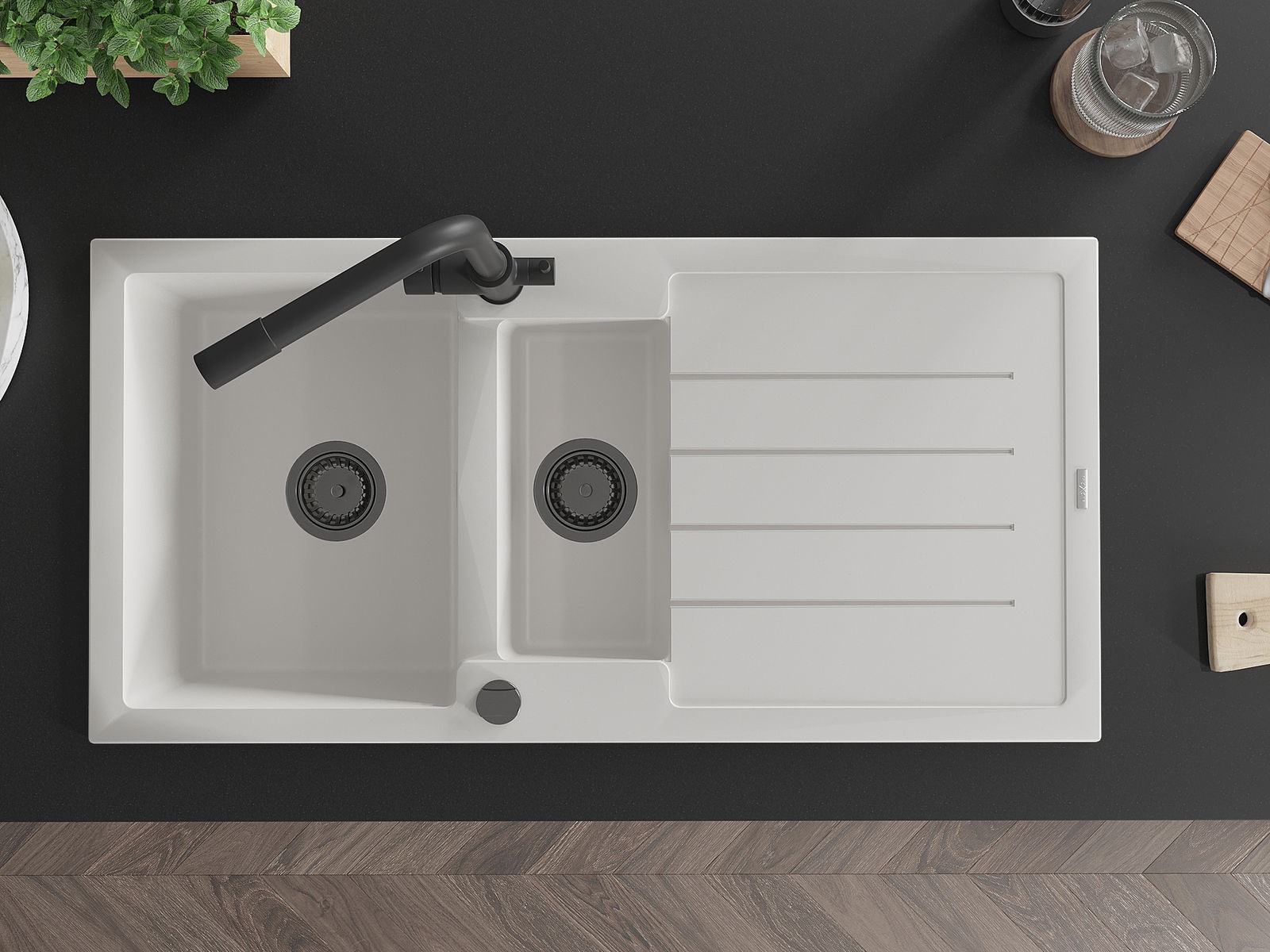 Datorită sistemului de montare universală, chiuveta este reversibilă, iar scurgerea poate fi montată pe blat la stânga sau la dreapta. În acest fel, puteți ajusta cu ușurință pagina la nevoile și condițiile dvs.