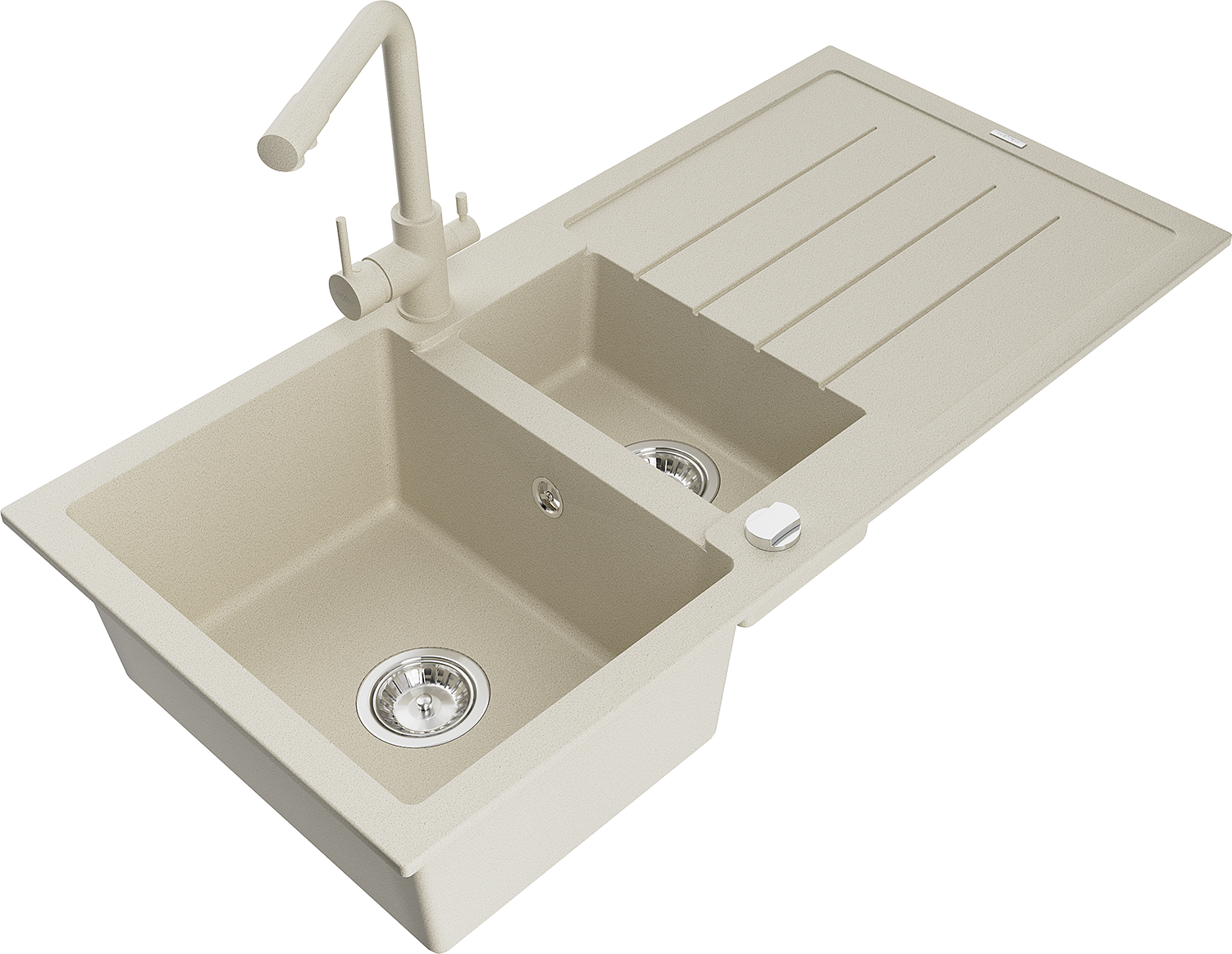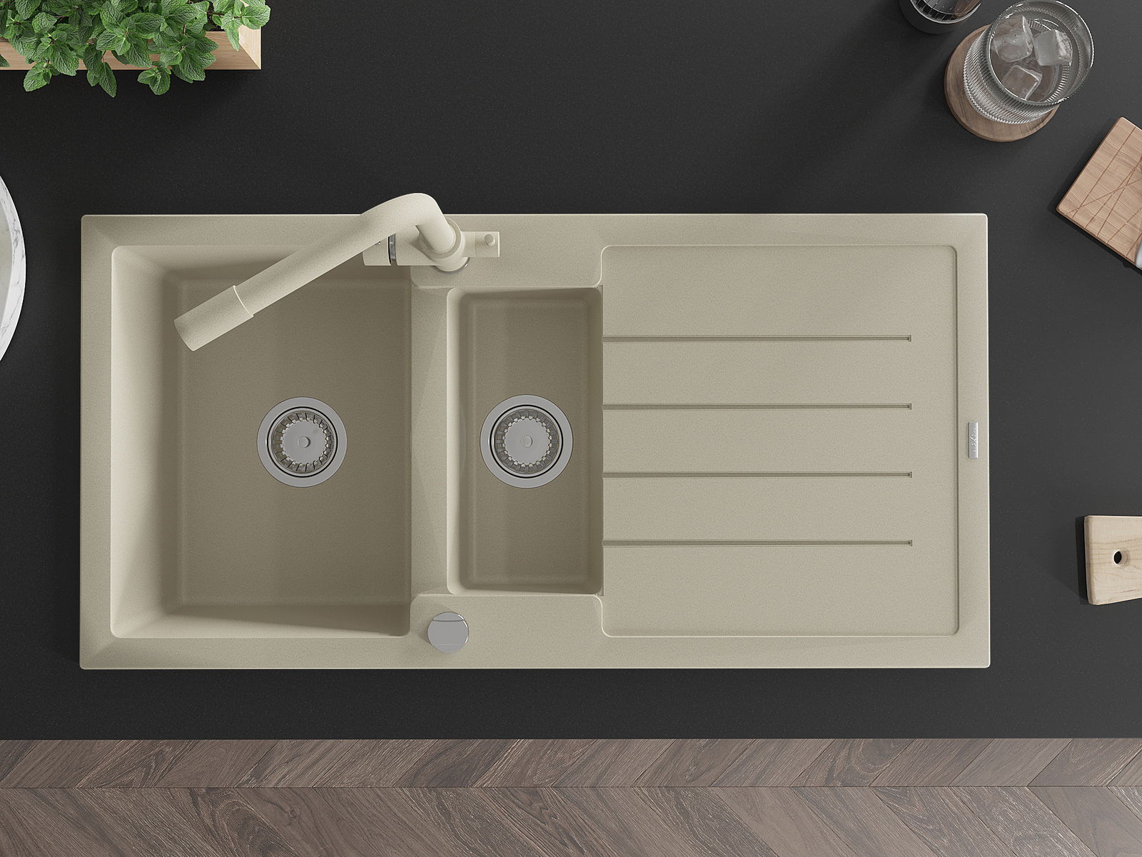 Mexen Andres chiuvetă granit 1,5 camere cu scurgător și baterie de bucătărie Duero, bej - 6515-69-671600-69