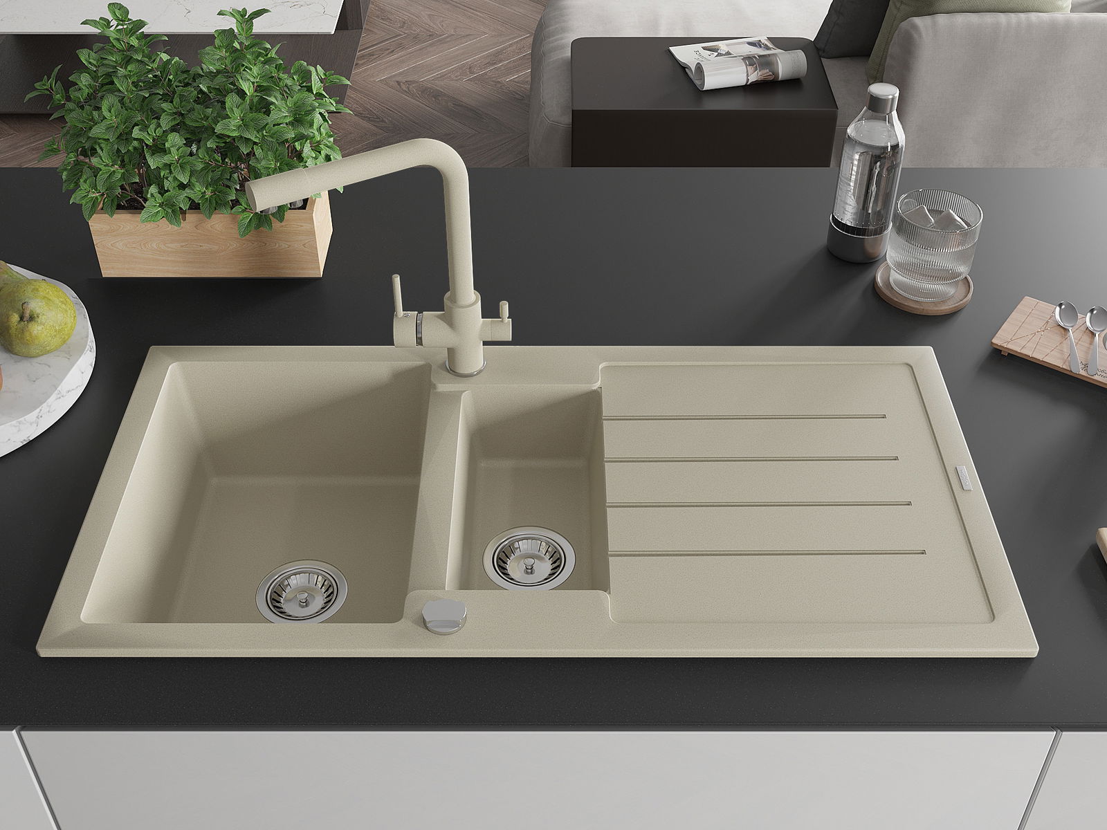 Suprafața chiuvetei este rezistentă la pete și decolorarea, datorită căreia este ușor de curățat și își păstrează culoarea mult timp. Estetică și practic completarea fiecărei bucătării.