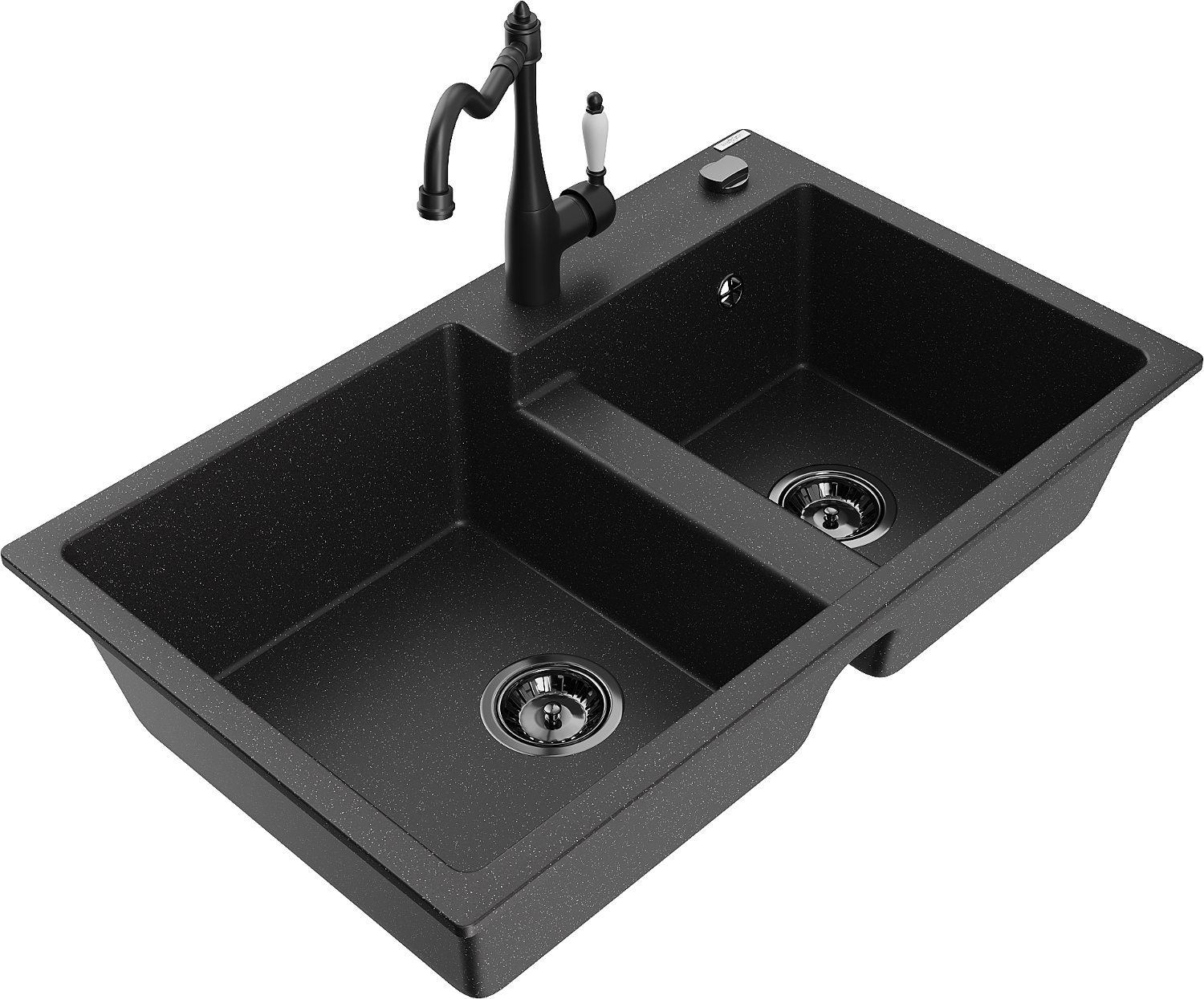 Mexen Tomas chiuvetă de bucătărie din granit cu 2 compartimente și baterie de bucătărie Carla, negru/argintiu metalic - 6516-73?