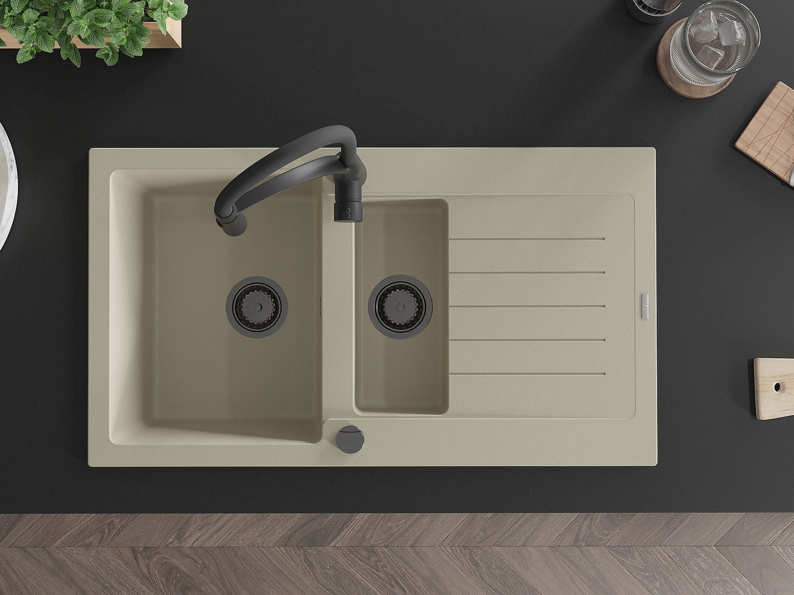 Suprafața chiuvetei este rezistentă la pete și decolorarea, datorită căreia este ușor de curățat și își păstrează culoarea mult timp. Estetică și practic completarea fiecărei bucătării.