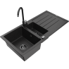 Mexen Andres chiuvetă de granit 1,5-camere cu scurgător și baterie de bucătărie Telma, negru pătat - 6515-76-670200-70-B