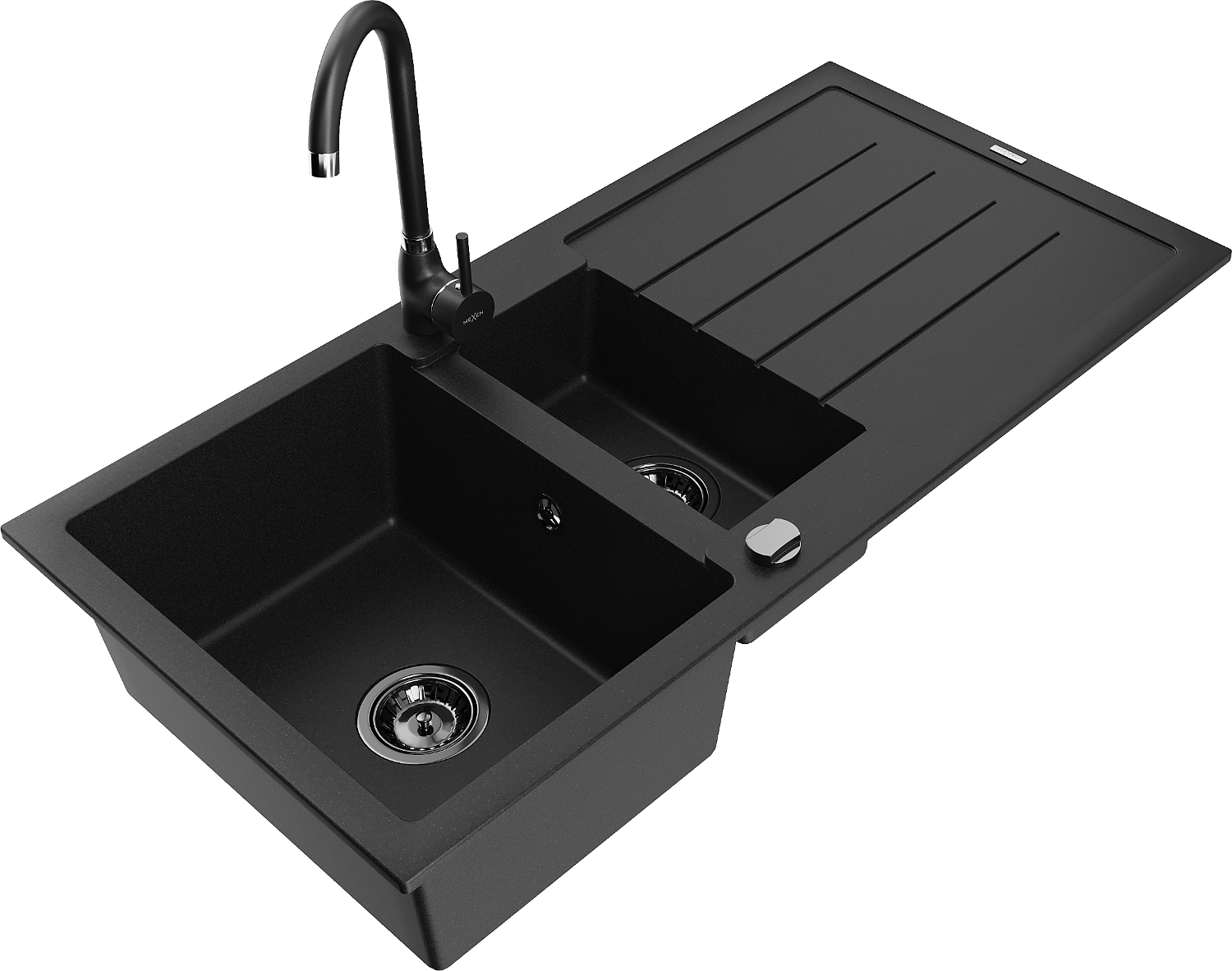 Mexen Andres chiuvetă de granit cu 1,5 camere, cu scurgător și baterie de bucătărie Telma, negru - 6515-77-670200-70-B