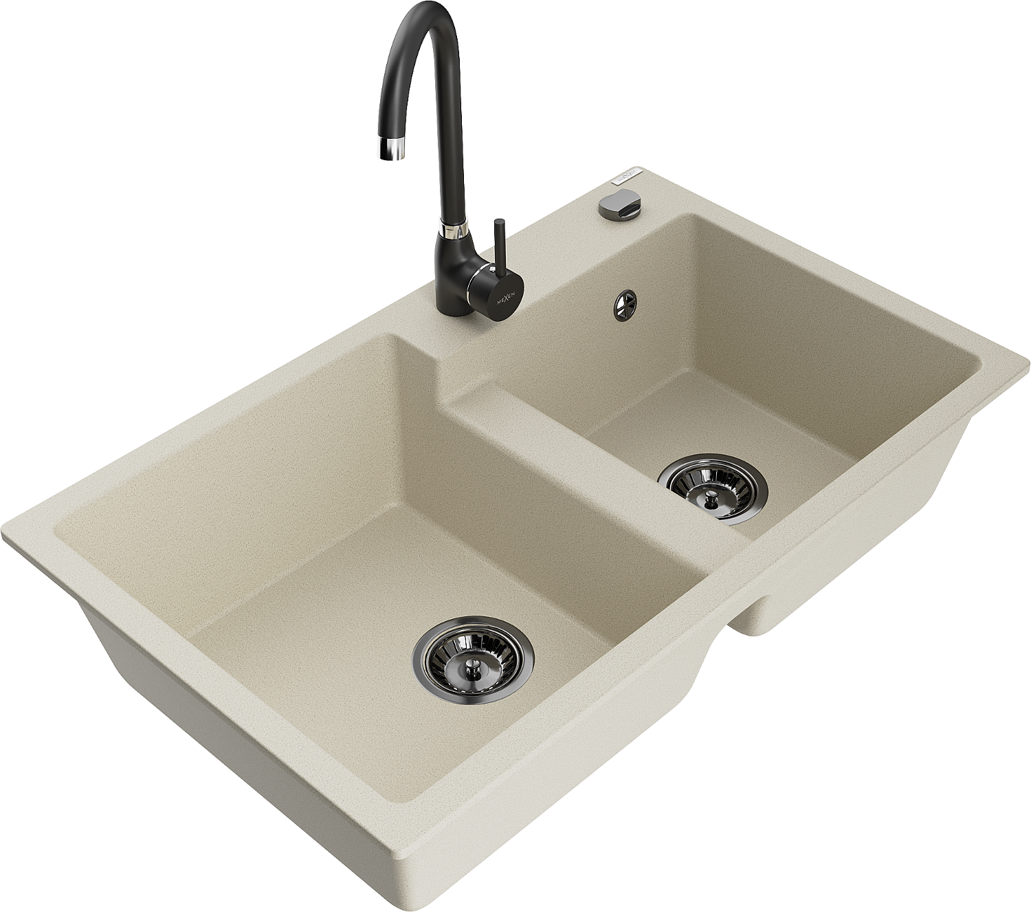Mexen Tomas chiuvetă de bucătărie din granit cu 2 compartimente și robinet de bucătărie Telma, bej - 6516-69-670200-70
