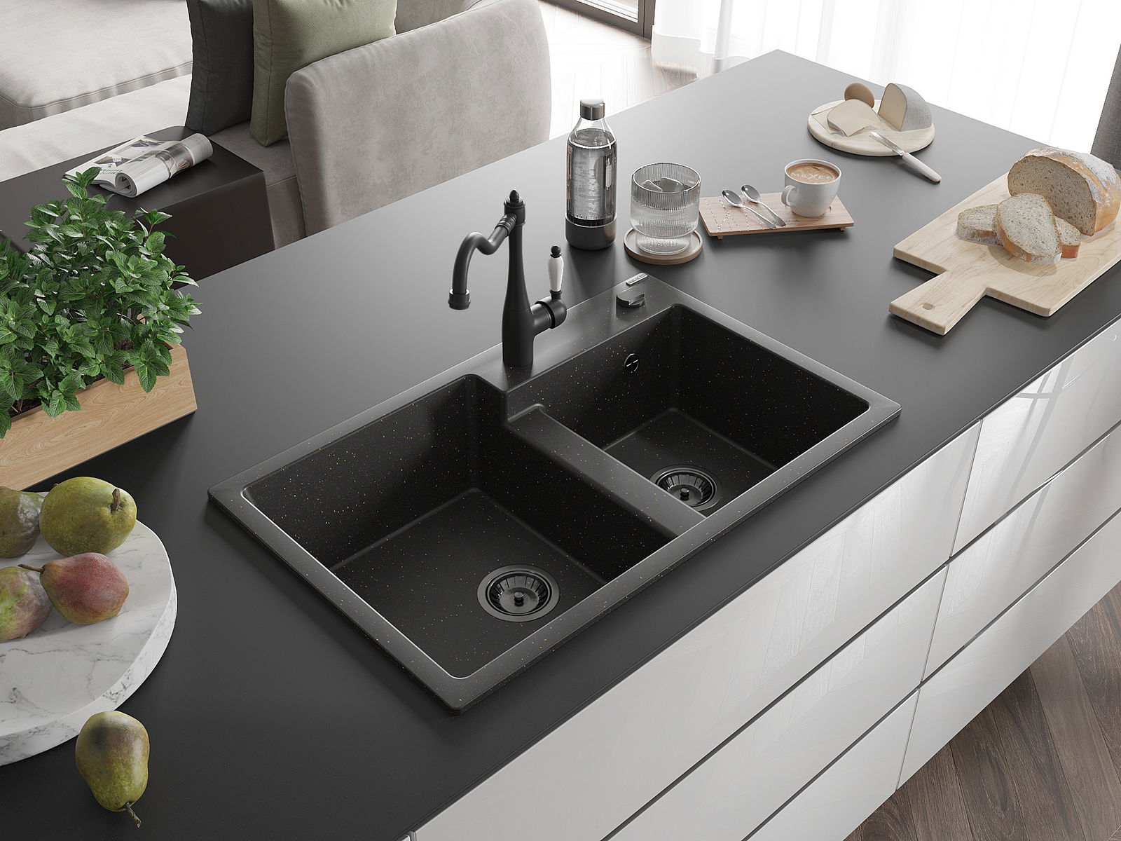 Chiuveta a fost realizată din granit de înaltă calitate. Reprezintă un complement elegant și, mai presus de toate, practic pentru orice bucătărie, indiferent de stilul acesteia. Calitatea înaltă și durabilitatea granitului asigură o utilizare de lungă durată.