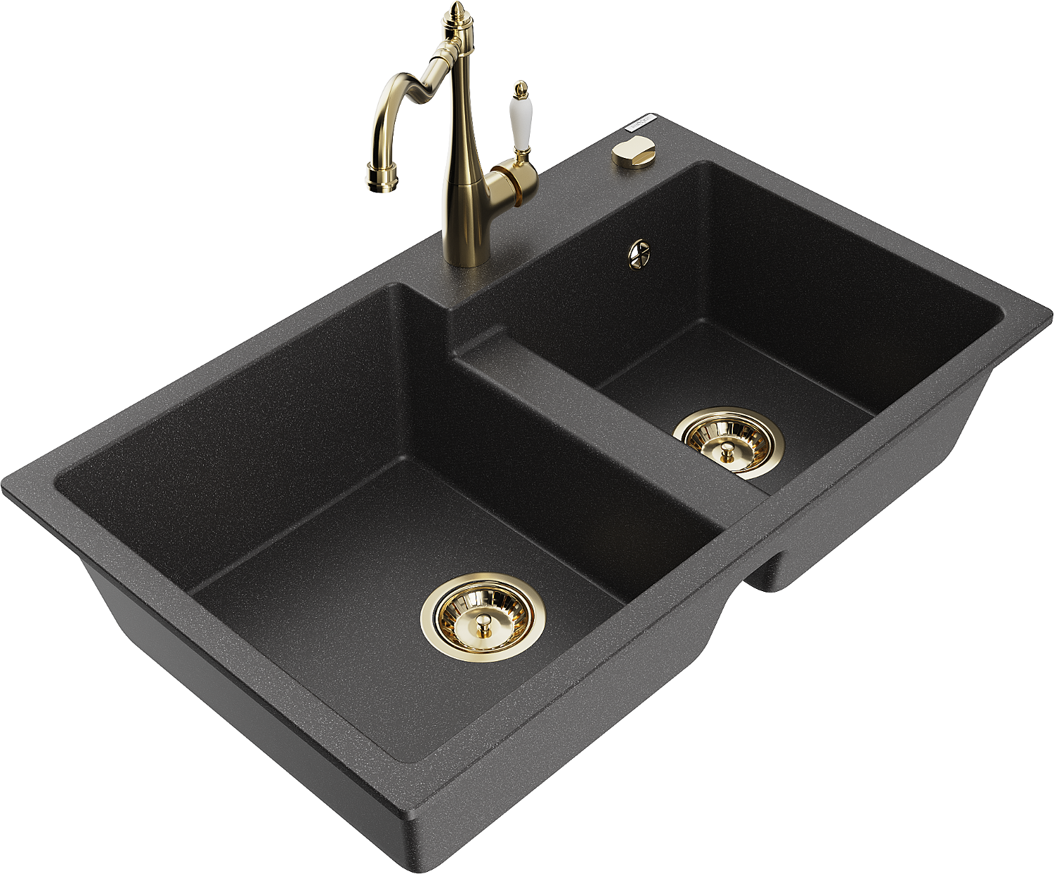 Mexen Tomas chiuvetă de bucătărie din granit cu 2 compartimente cu baterie Carla, negru pătat - 6516-76-670700-50