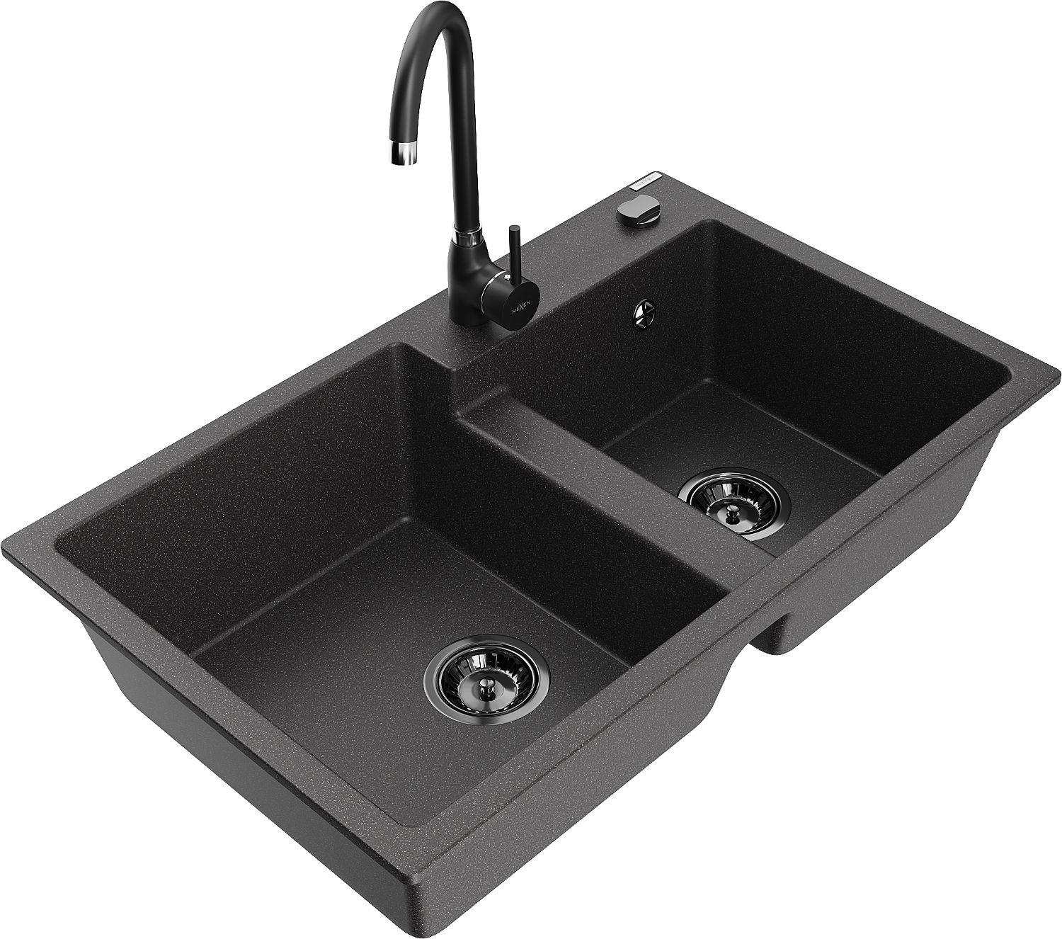 Mexen Tomas chiuvetă de granit cu 2 camere și baterie de bucătărie Telma, negru cu puncte - 6516-76-670200-70-B