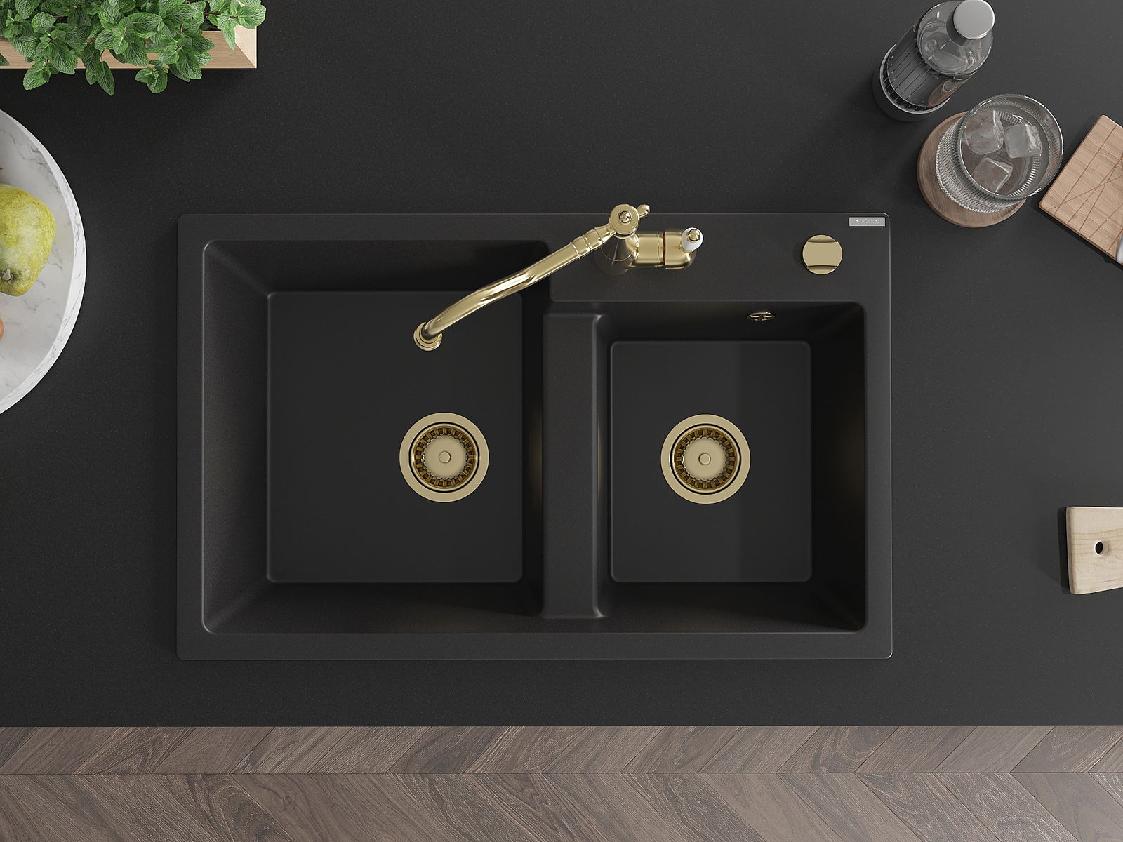 Chiuveta are o gaură prezentată cu un diametru de 35 mm pentru auto -burst. Poate fi folosit, printre altele Pentru montarea unui distribuitor de lichid care va elimina prezența sticlelor de plastic în bucătărie și îi va oferi un finisaj elegant.