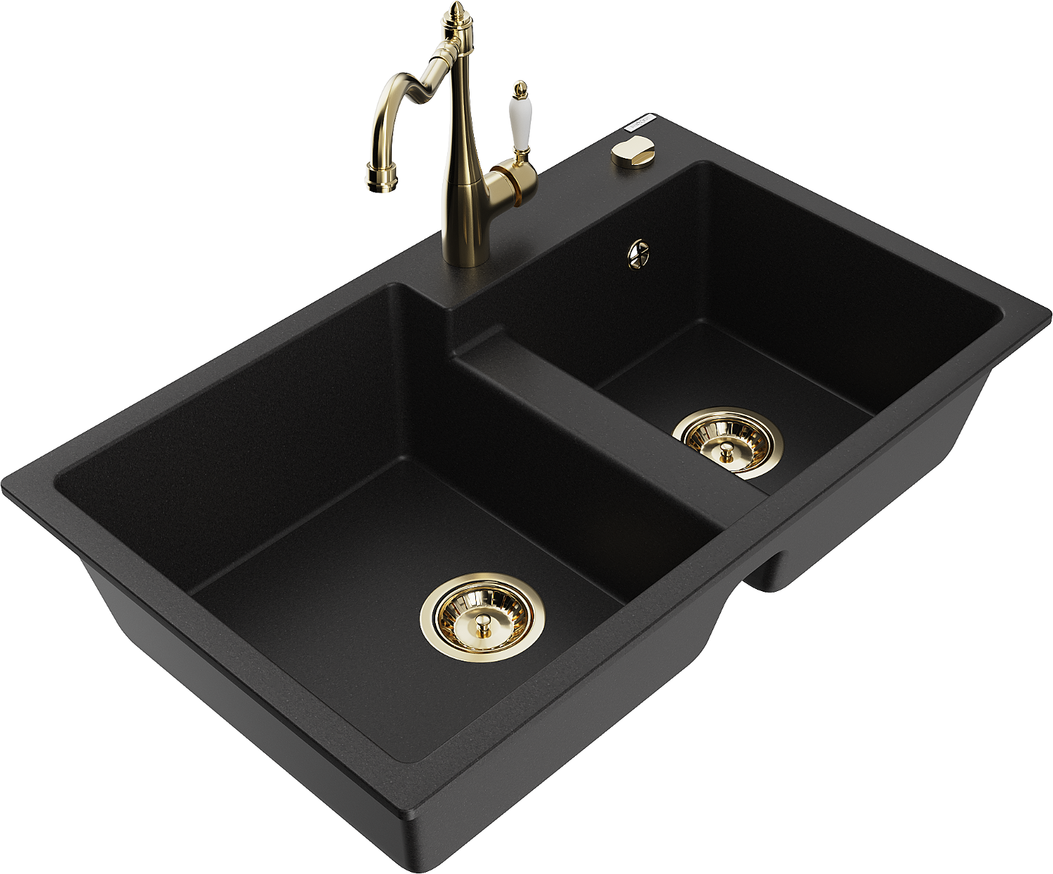 Mexen Tomas chiuvetă de granit cu 2 cuve cu baterie de bucătărie Carla, negru - 6516-77-670700-50