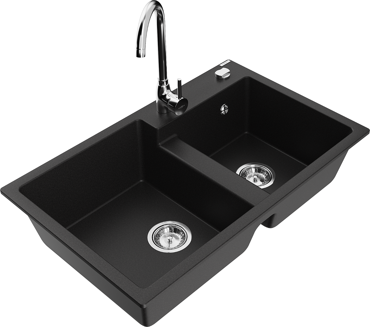 Mexen Tomas chiuvetă de granit cu 2 compartimente cu baterie de bucătărie Telma, negru - 6516-77-670200-00